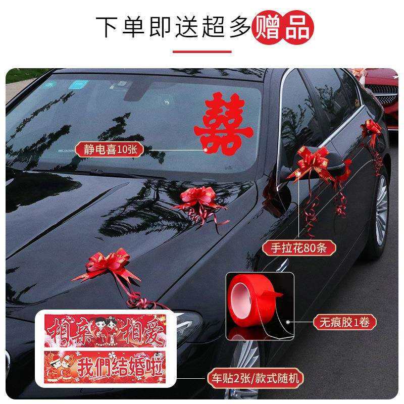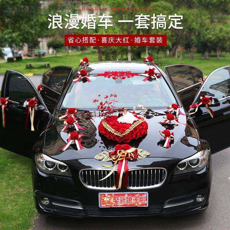 婚车装饰品全套装副车头花新娘结婚礼布置红色仿真迎亲花车队