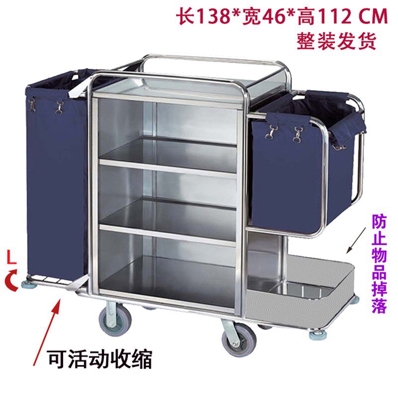 酒店布草车宾馆客房服务车不锈钢推车双边房口车清洁保洁车工作车