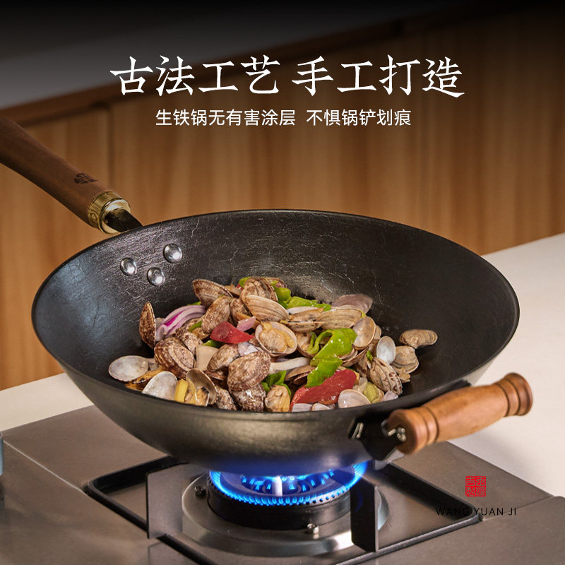 铁锅官方旗舰炒菜锅老式炒锅铁锅家用不粘锅无涂层燃气灶适用