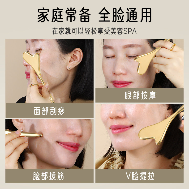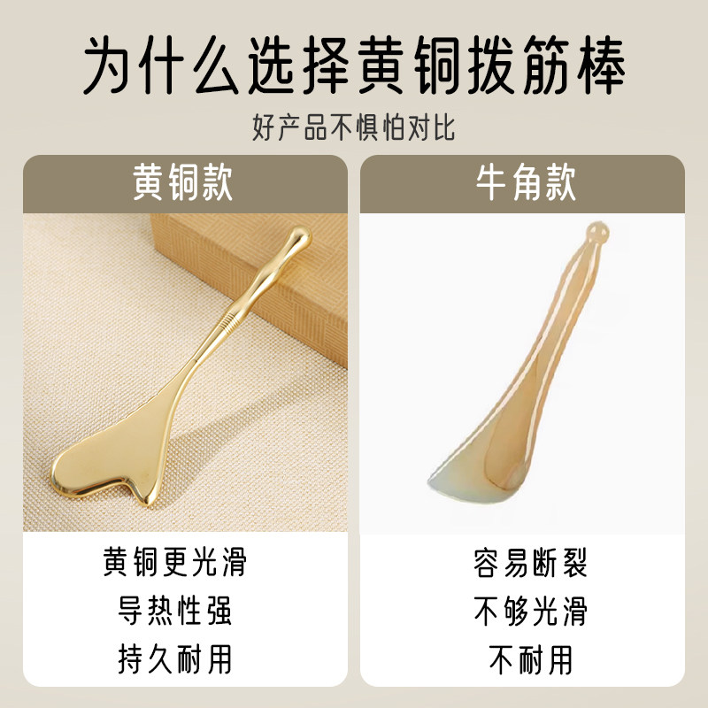 丰林纯黄铜拨筋棒面部眼部按摩板脸部美容院工具穴位牛角刮痧中医