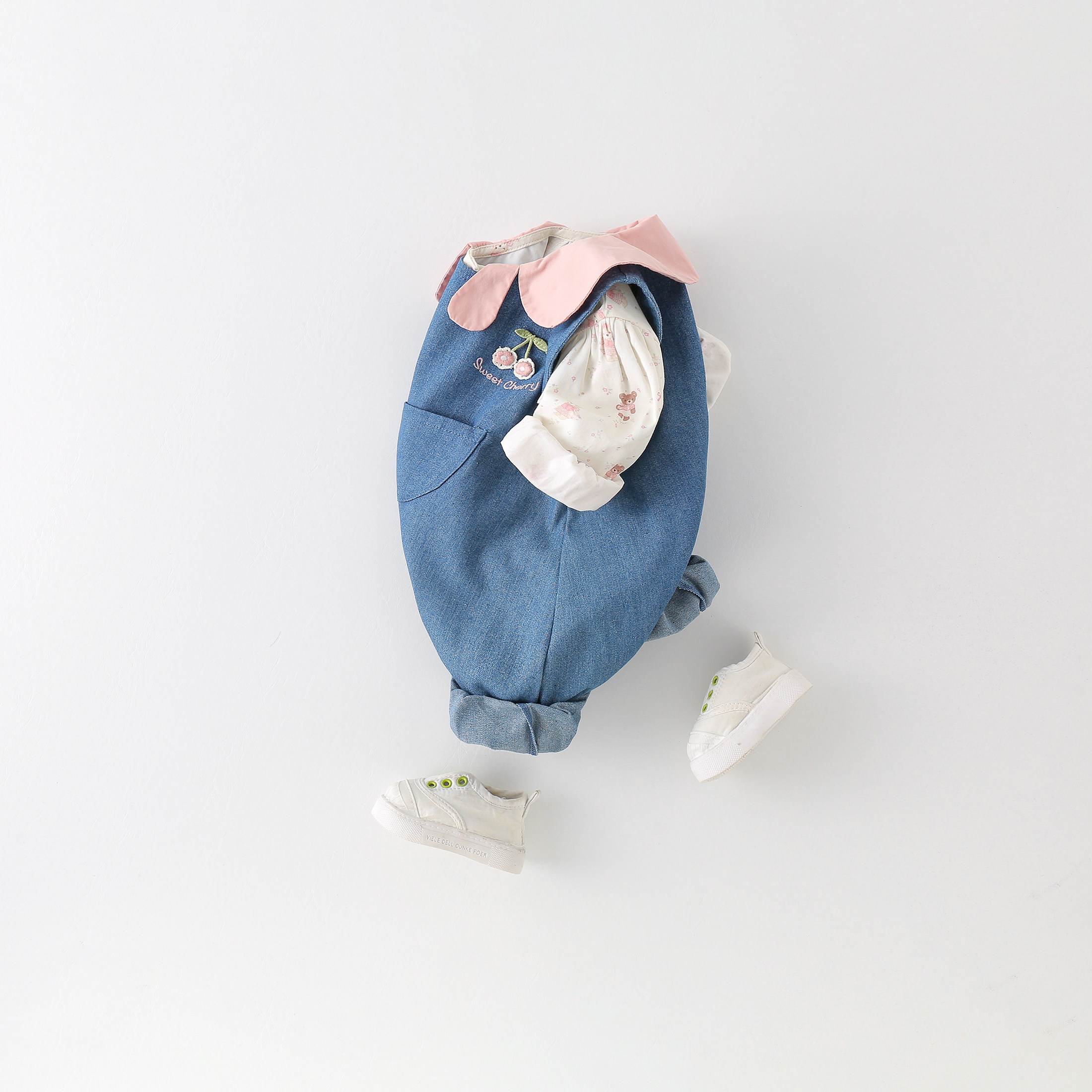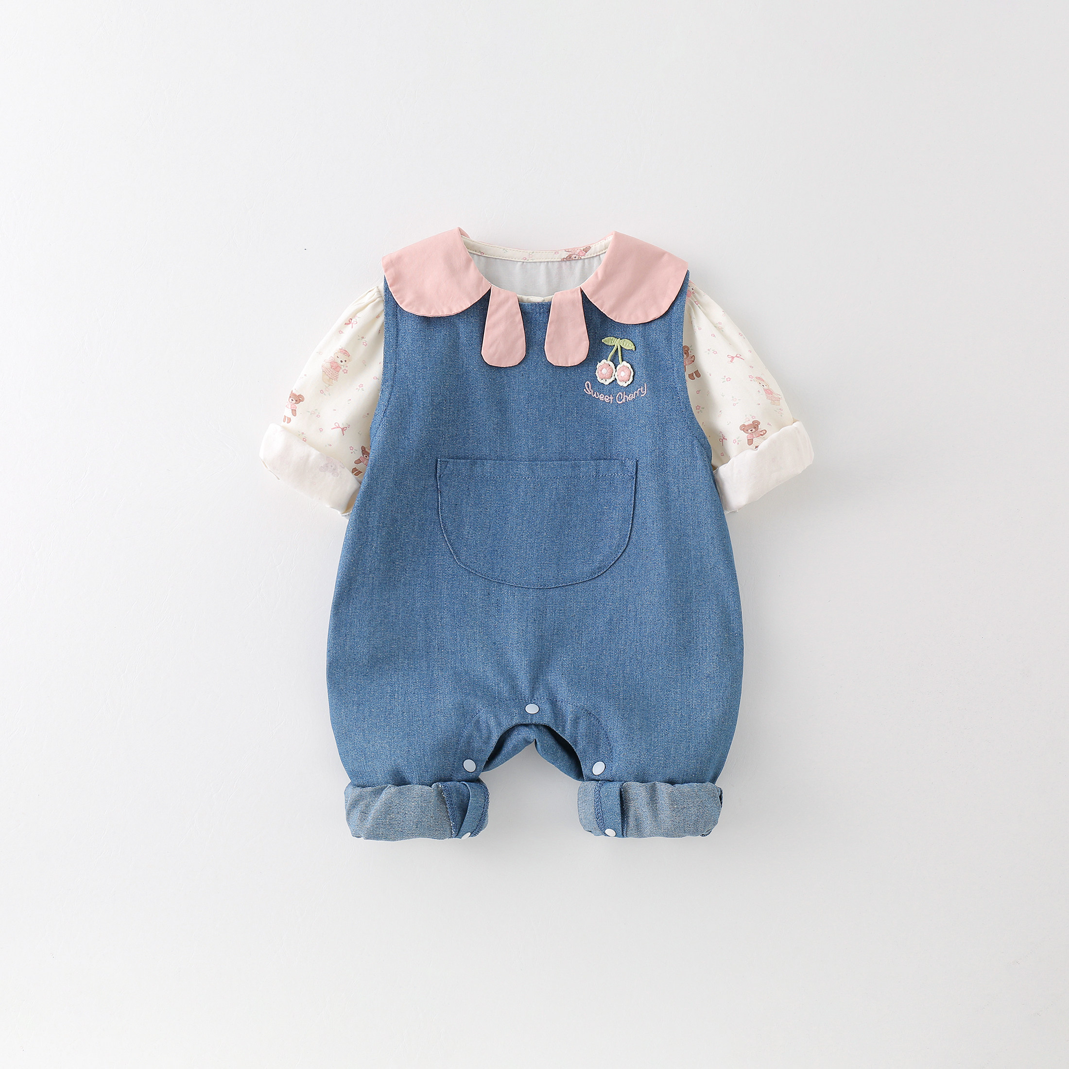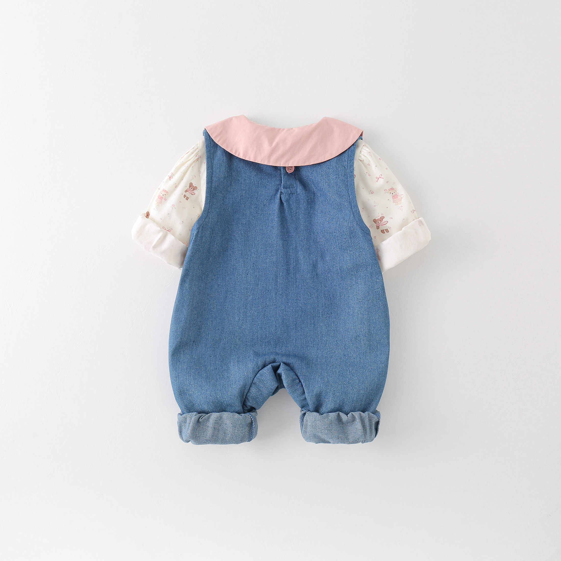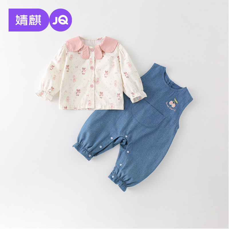 婧麒婴儿秋装套装2025新款可爱女童长袖宝宝牛仔背带裤春秋季衣服