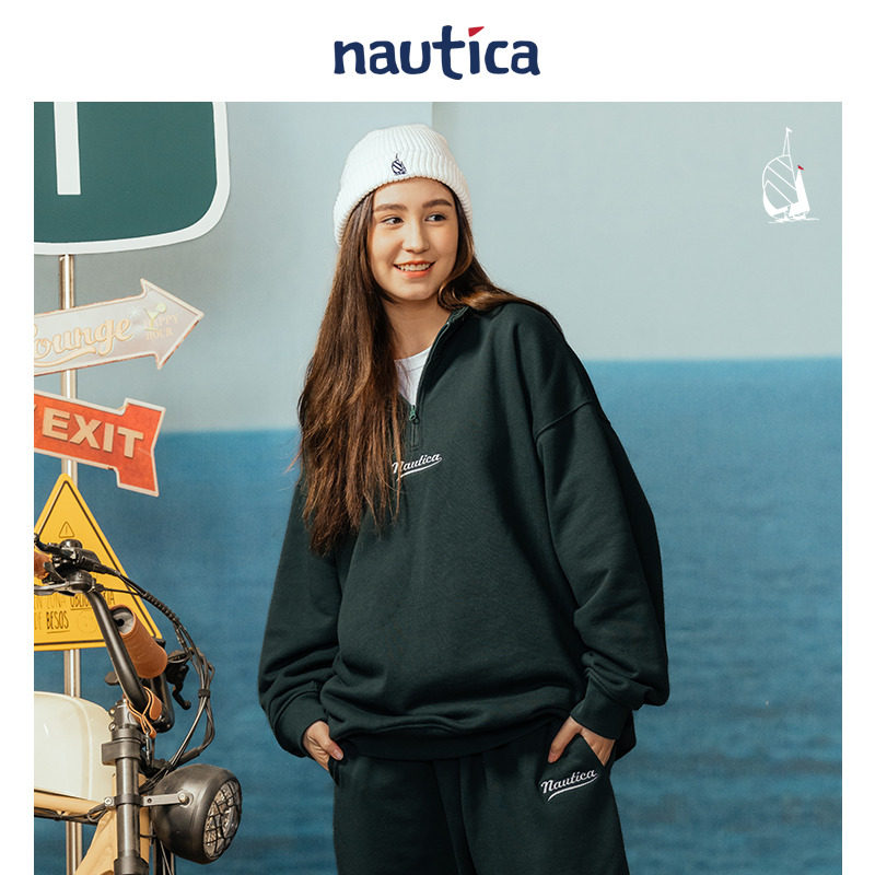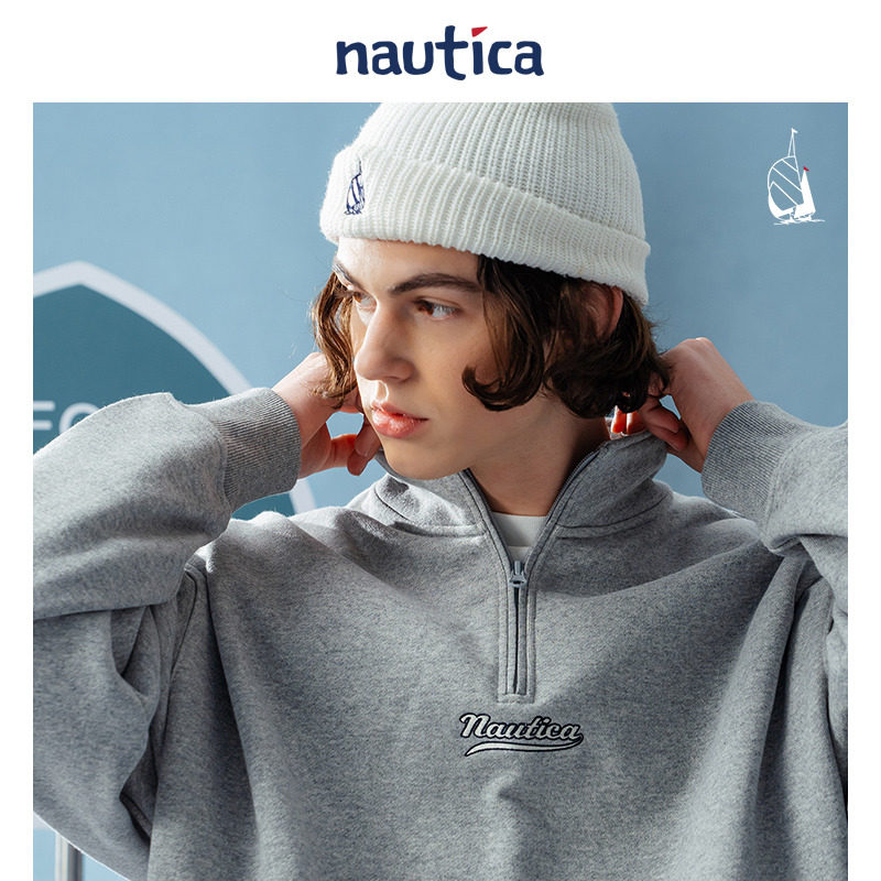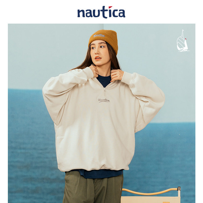 【官方正品】nautica 白帆 日系情侣学院风宽松半拉链卫衣KW3105