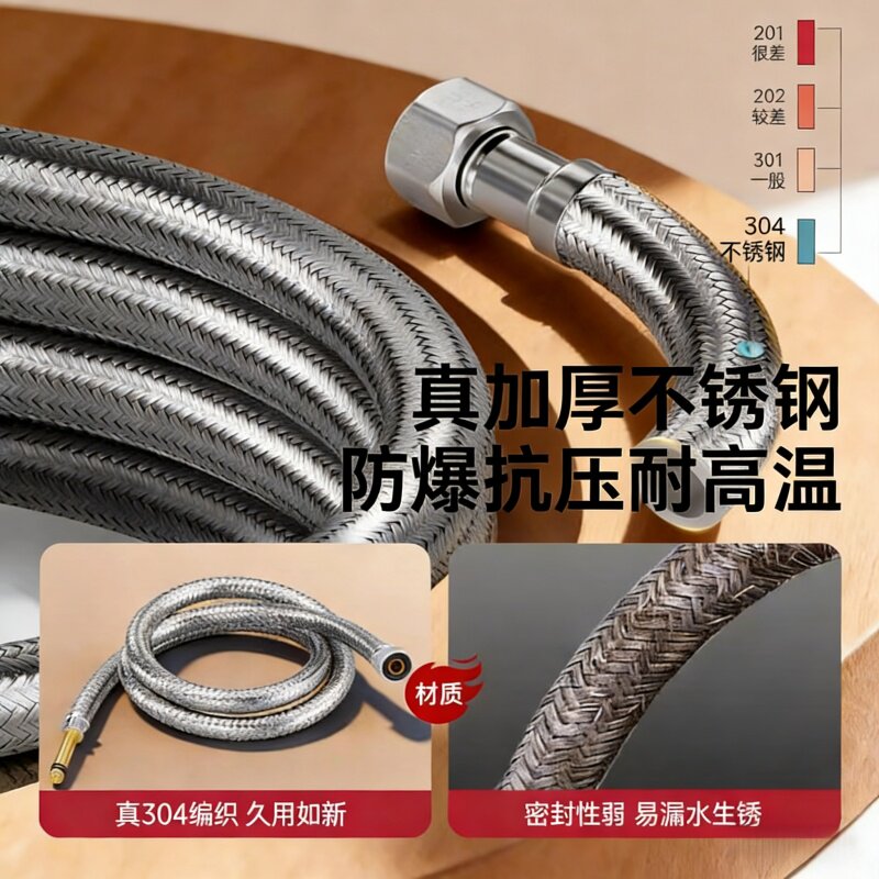 厨房洗菜盆冷热两用水龙头连接管子进水管通用防爆不锈钢编织软管