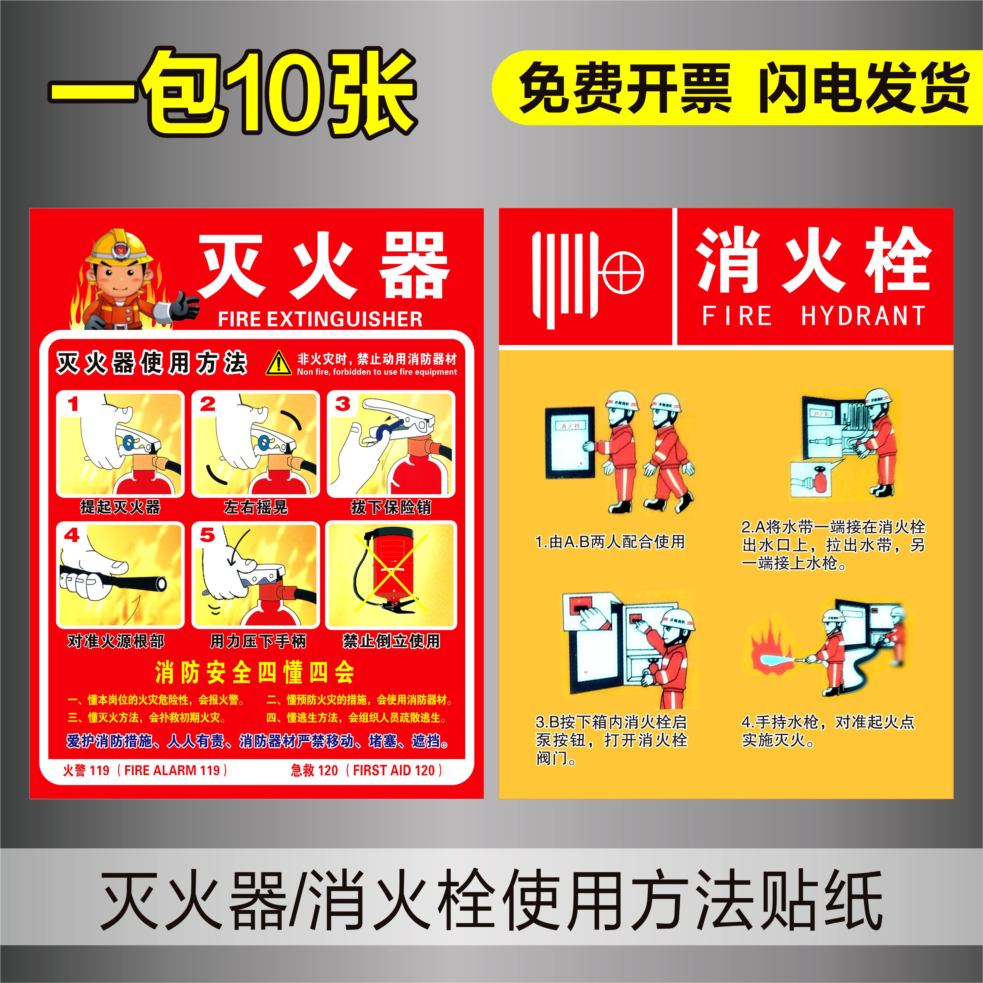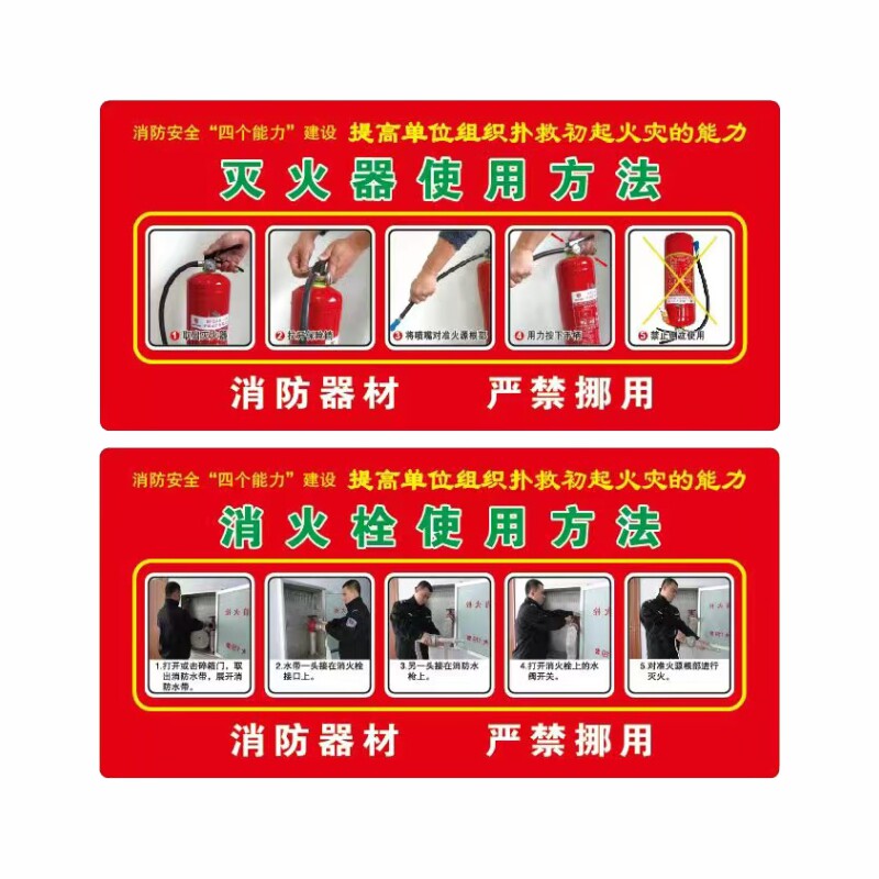 消防栓贴纸消火栓箱贴 防水PVC加厚灭火器使用方法标识牌泡沫背胶