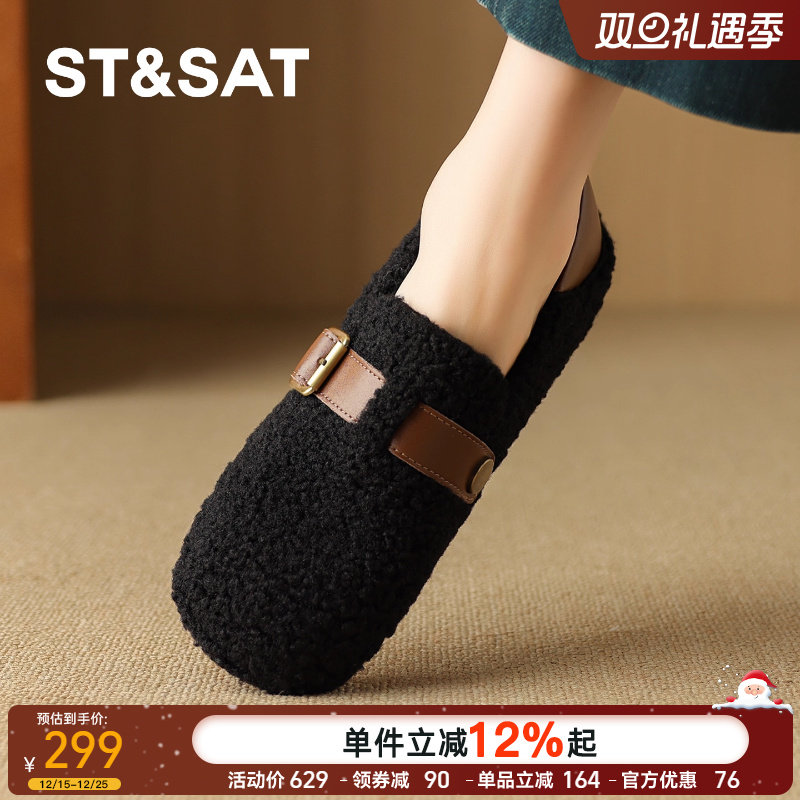 星期六毛毛鞋女2025年冬季新款平底低跟一脚蹬圆头加绒舒适勃肯鞋