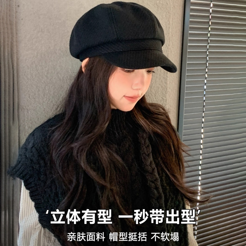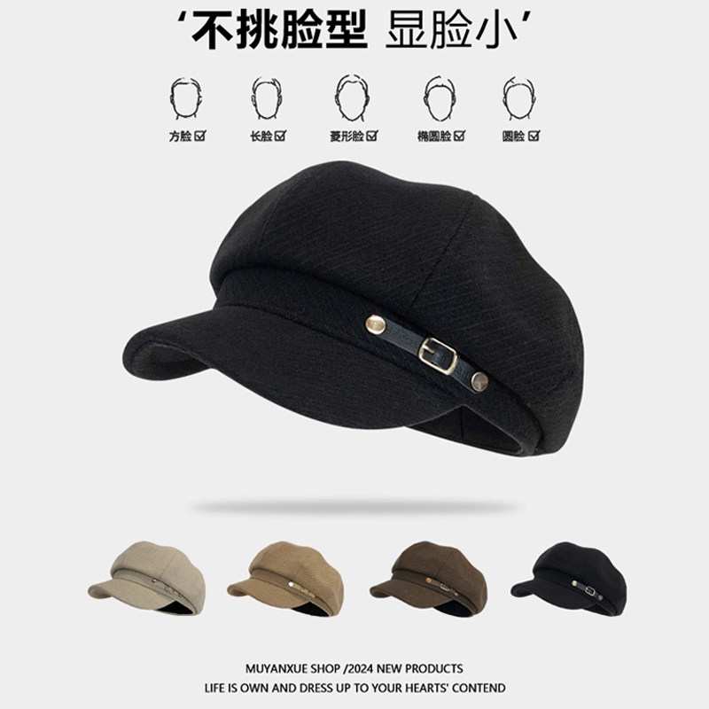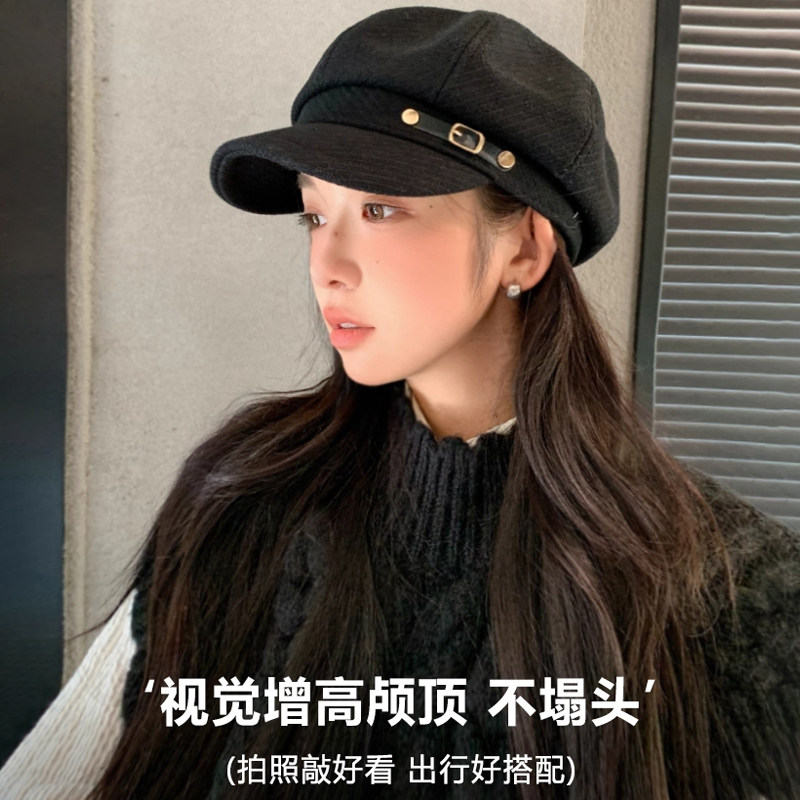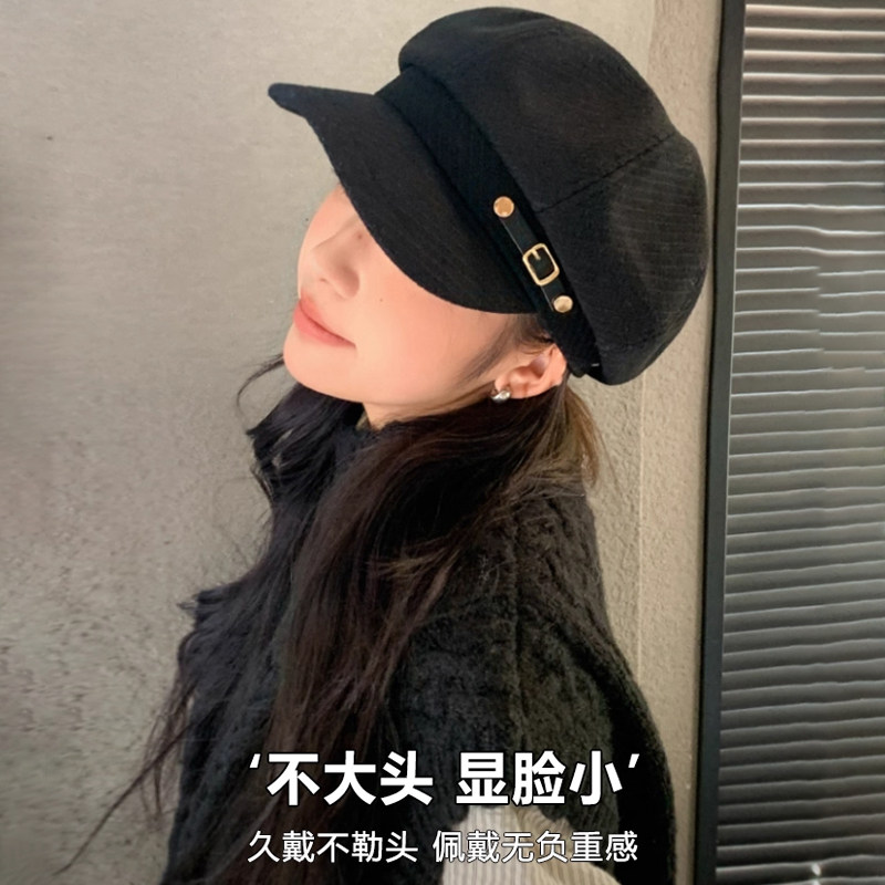 大头围八角帽子女秋冬新款毛呢贝雷帽英伦复古报童帽显脸小画家帽