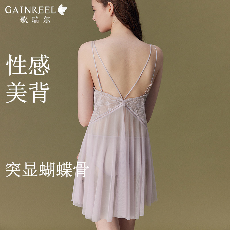歌瑞尔透视网纱蕾丝吊带睡裙女性感纯欲睡衣约会战袍纯欲风家居服
