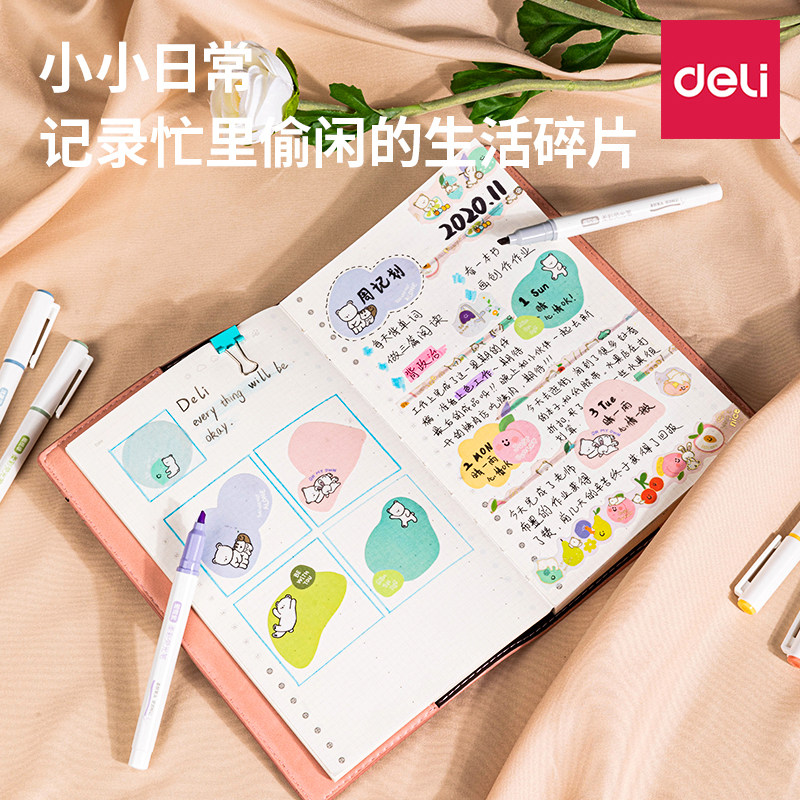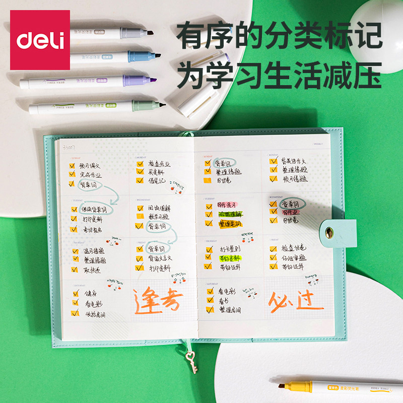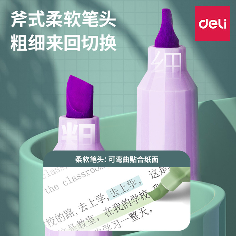 得力荧光笔软头学生用淡色系重点标记号划线笔手账笔马卡龙彩色笔