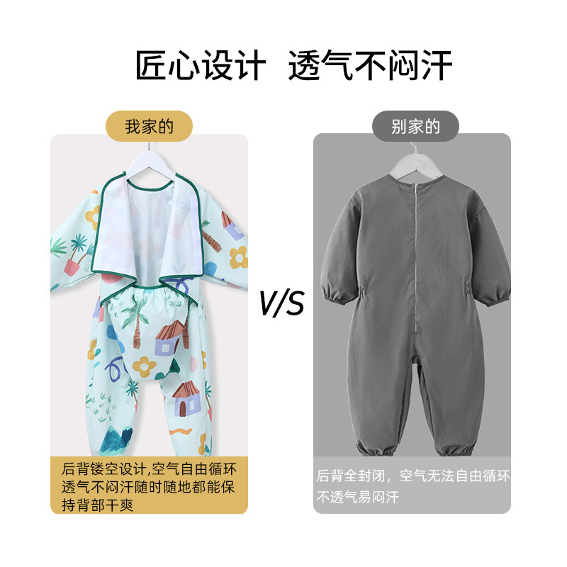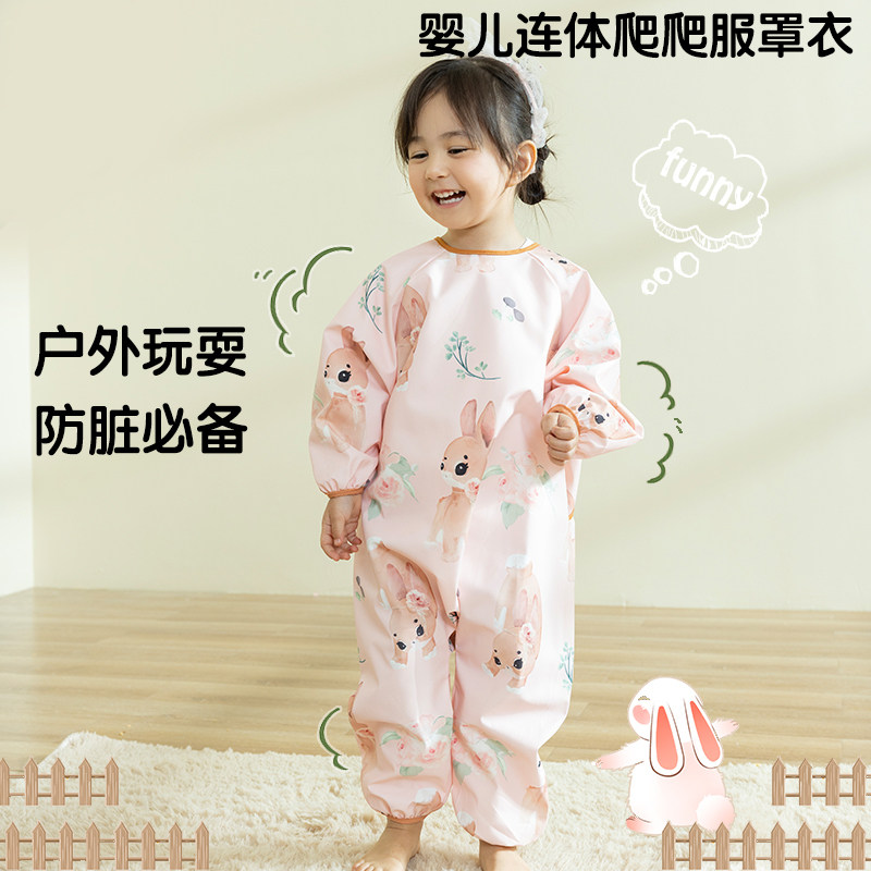婧麒宝宝爬行服婴儿爬爬服防水防脏婴儿连体罩衣一体儿童全身罩衣