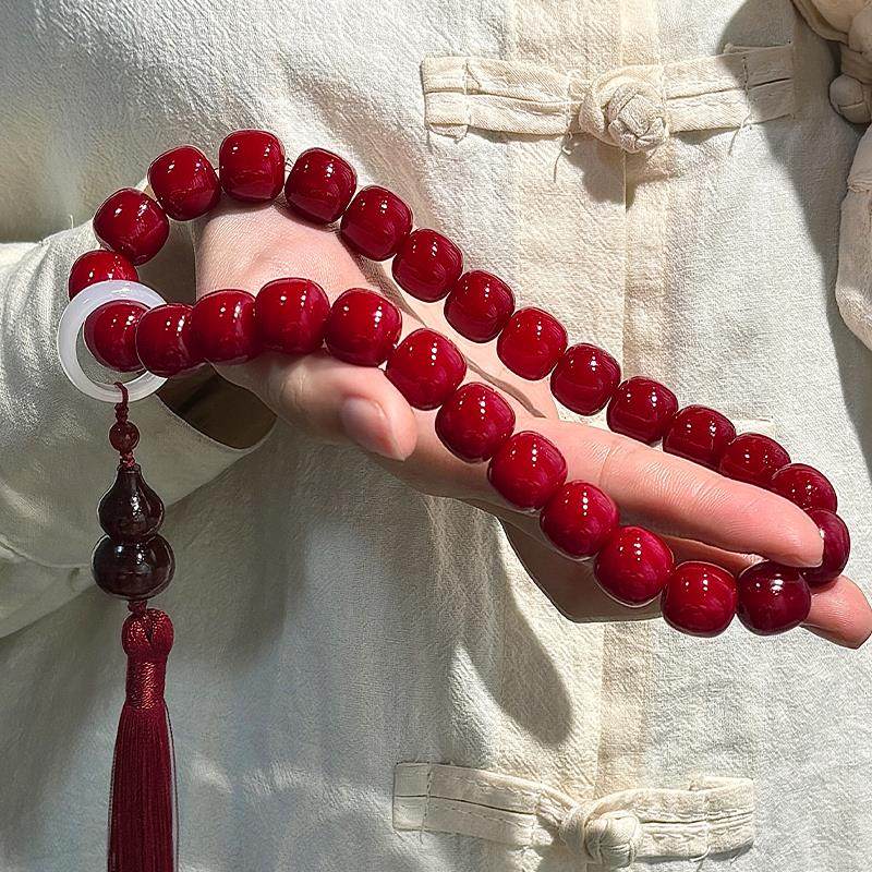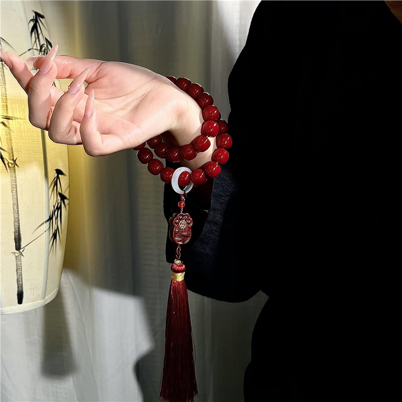 2026新年好运菩提根手串本命年双圈手持流苏佛珠念珠礼物盘玩手链