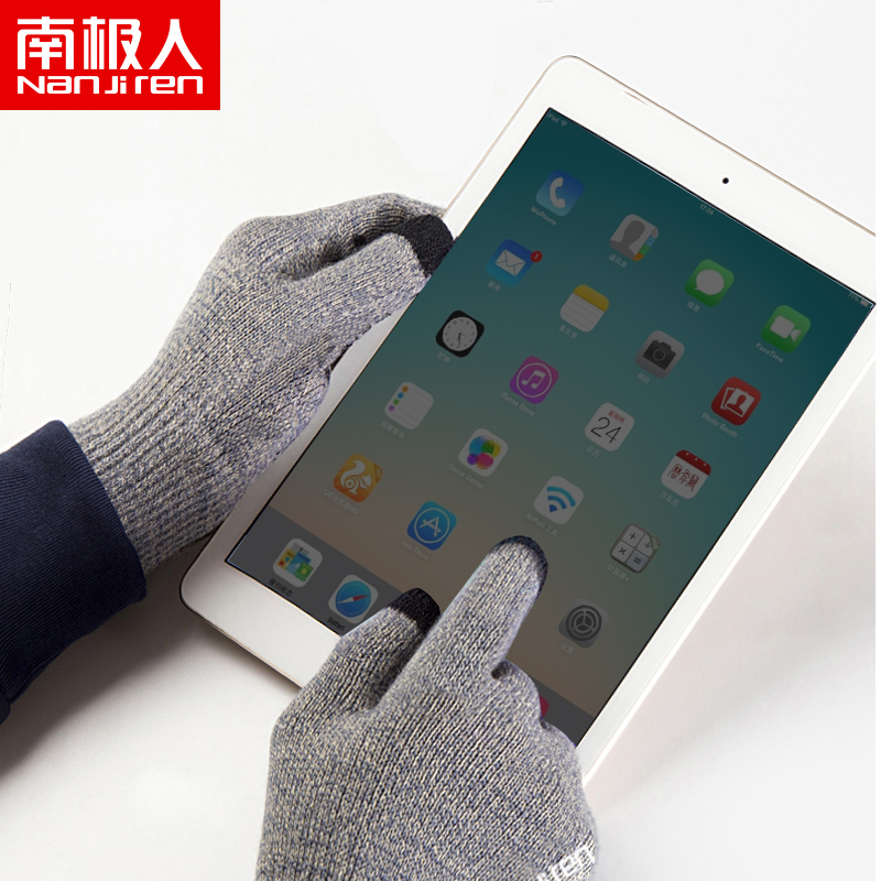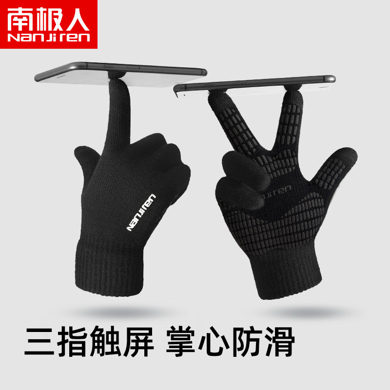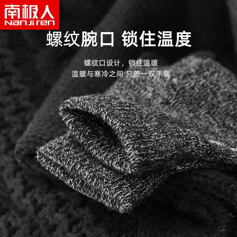 南极人针织手套男士秋冬季保暖加厚全指骑行防寒风触屏防滑女士J