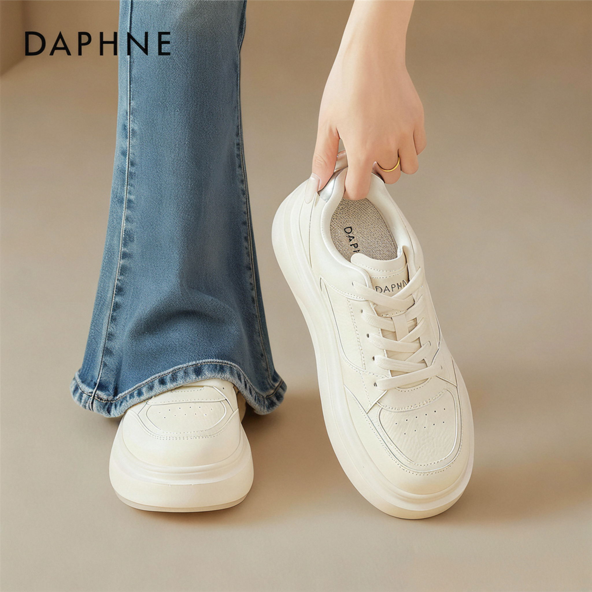 达芙妮厚底板鞋女2026新款软不累脚休闲百搭小白鞋增高运动松糕鞋