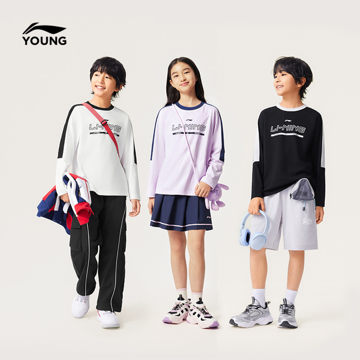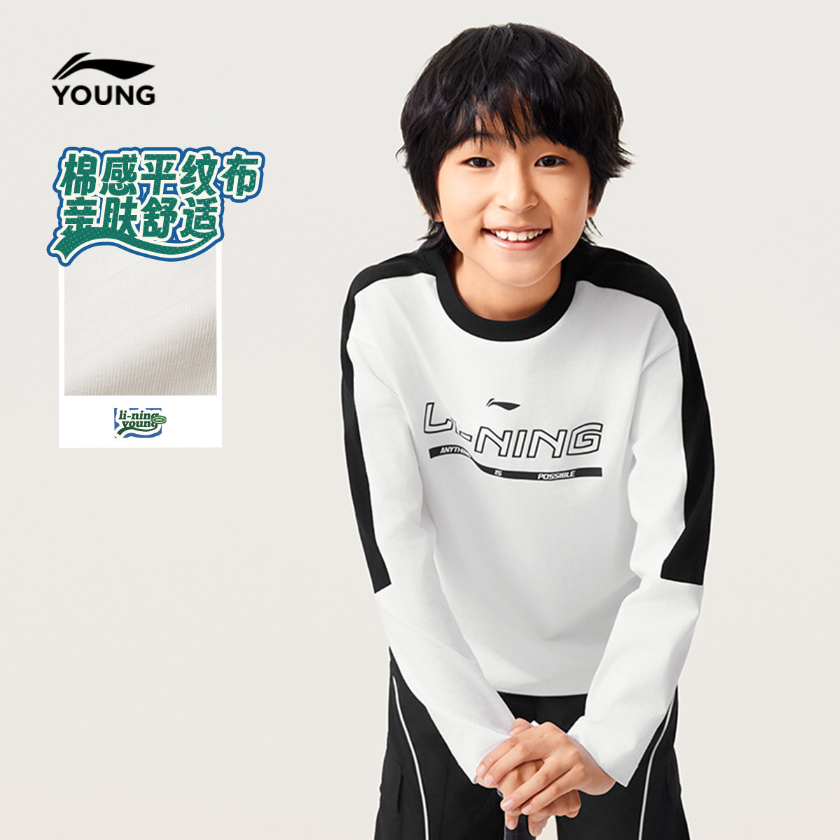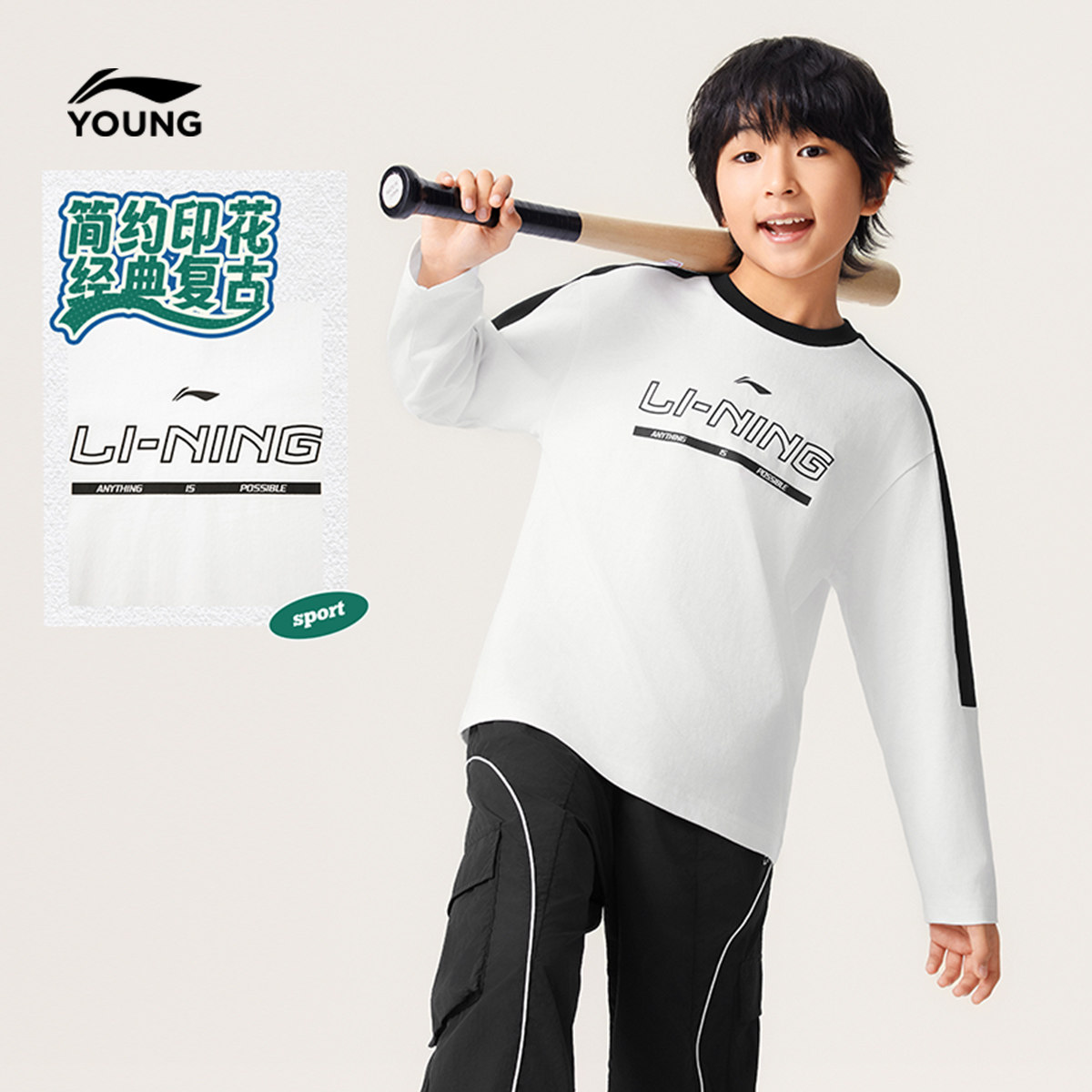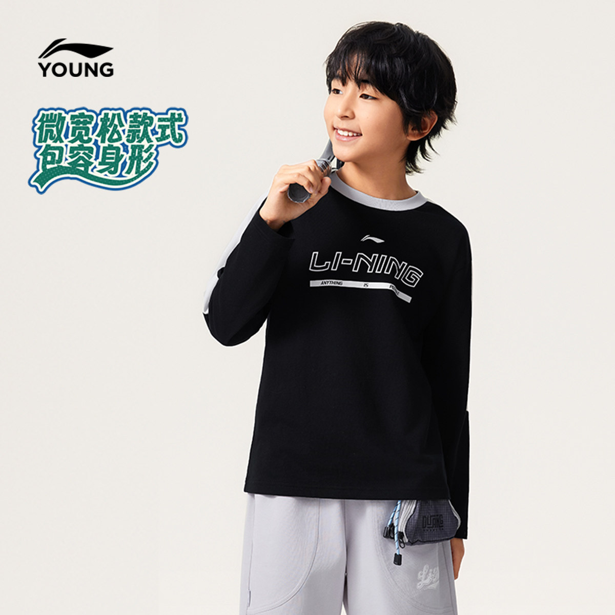 李宁儿童长袖T恤春夏款男童装男孩上衣春季女中大童学生春装衣服