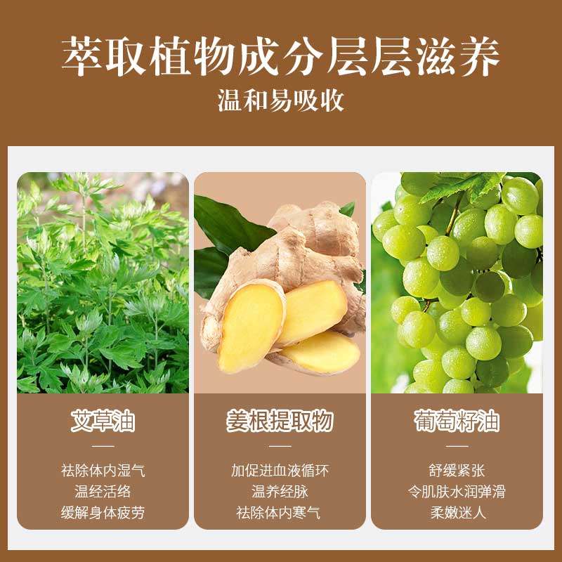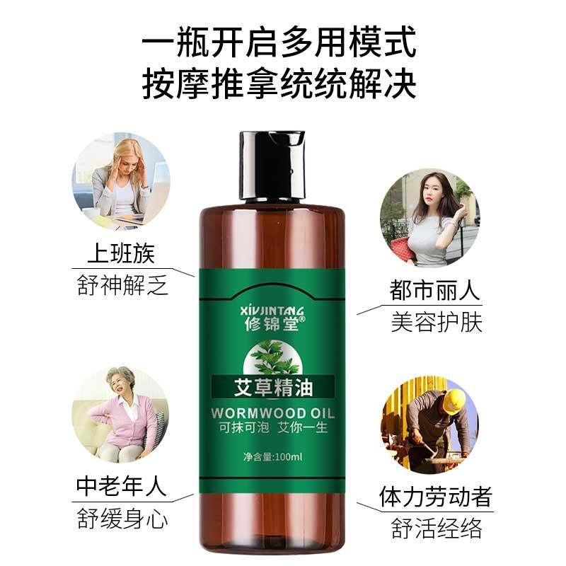 艾草按摩精油通经络全身推拿发热开背免洗刮痧精油推背美容院同款