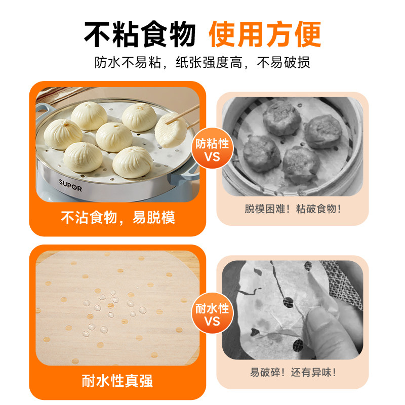 苏泊尔蒸笼纸厨房垫子食品馒头蒸锅纸家用不粘屉不沾一次性包子纸