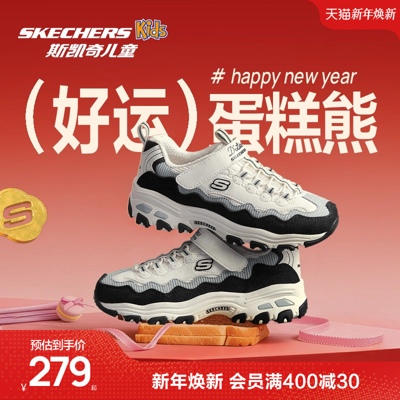 Skechers斯凯奇儿童蛋糕熊秋冬女童熊猫老爹鞋大童防滑休闲运动鞋