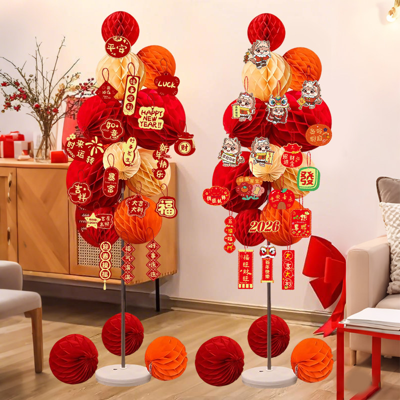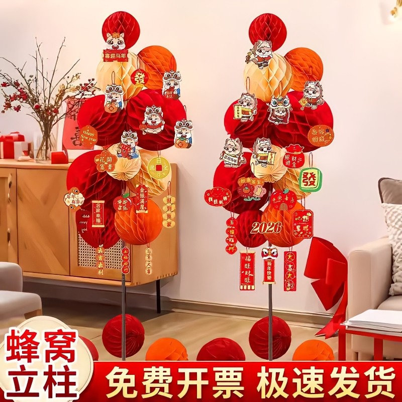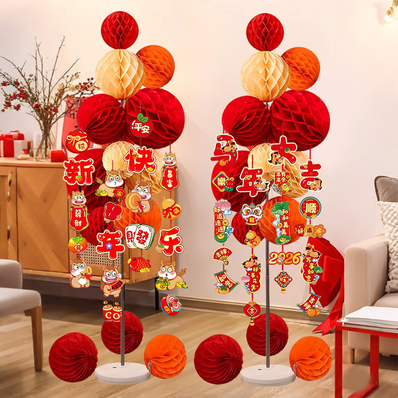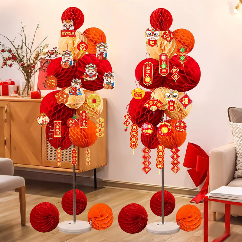 元旦装饰蜂窝球灯笼立柱落地马年春节教室新年氛围场景布置迎新