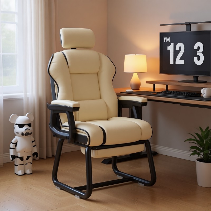 皮质家用电脑椅电竞椅办公椅舒适久坐可躺沙发椅休闲老板椅弓形椅