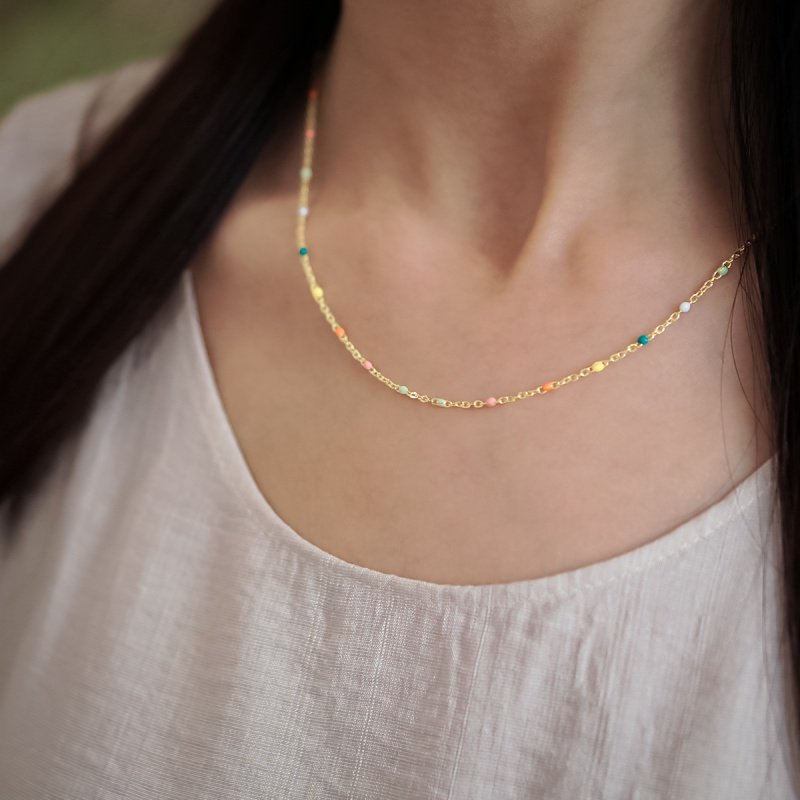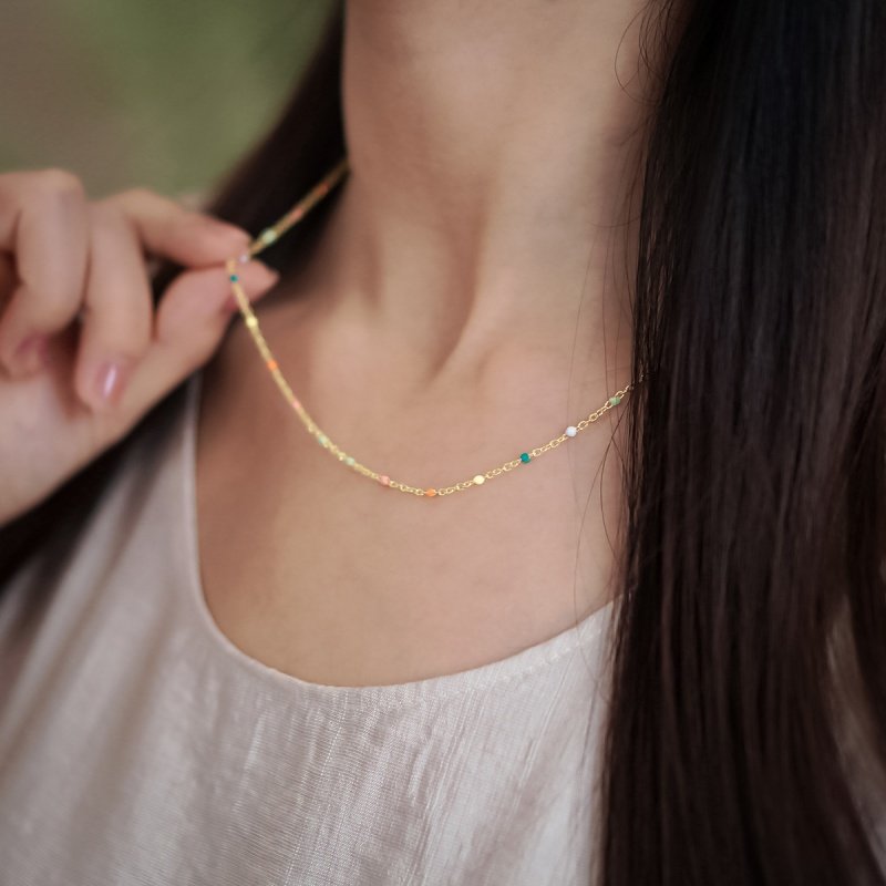 铜合金镀18K金 滴油彩虹项链波西米亚项链 气质时尚百搭女款