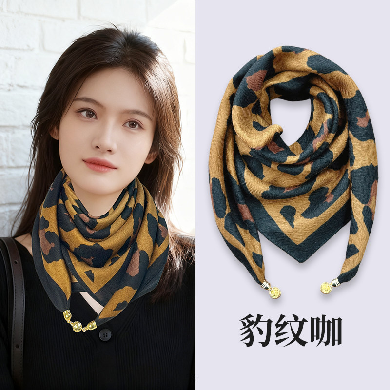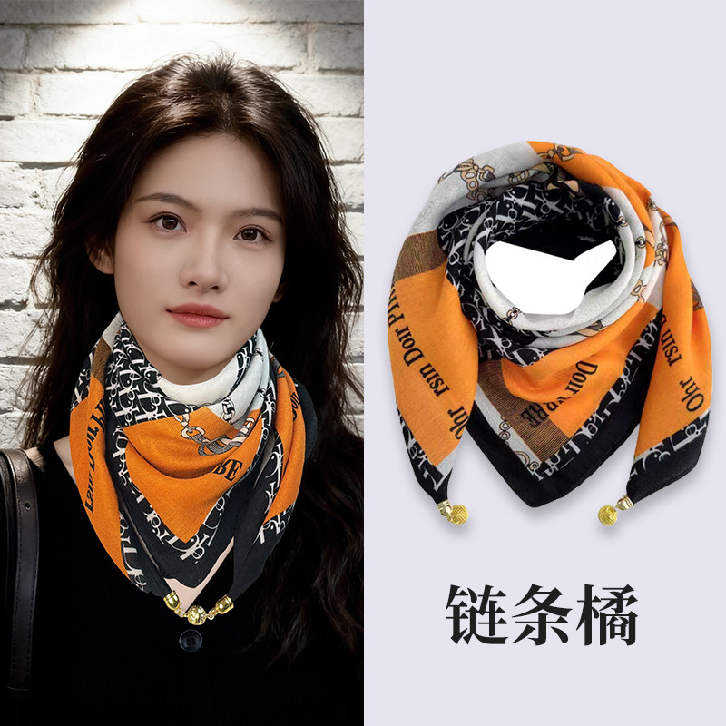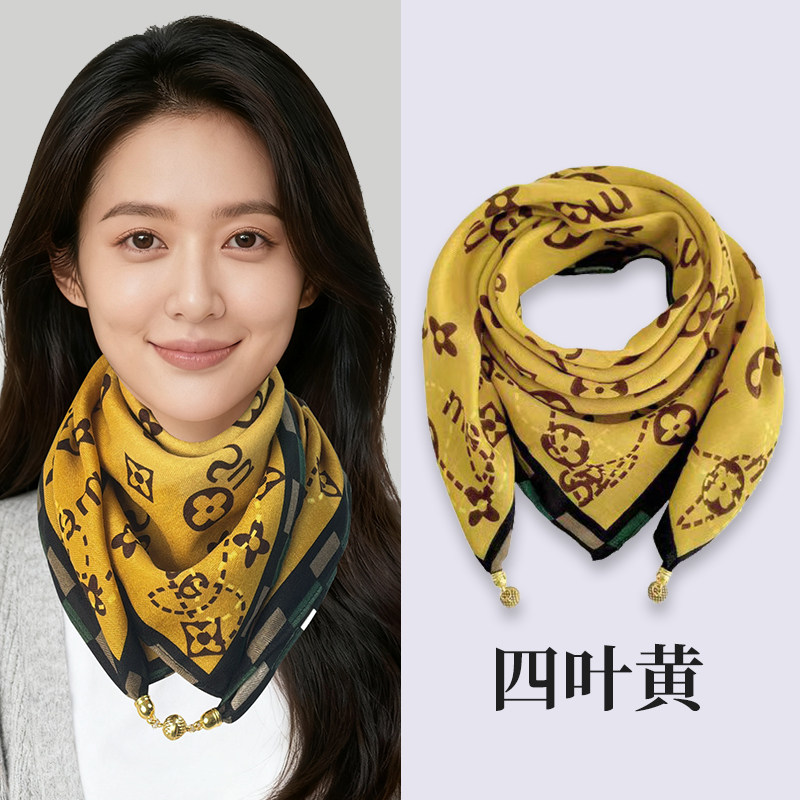 2025新款磁吸扣丝巾女秋冬薄款方巾护颈围巾围脖时尚百搭波点棉麻