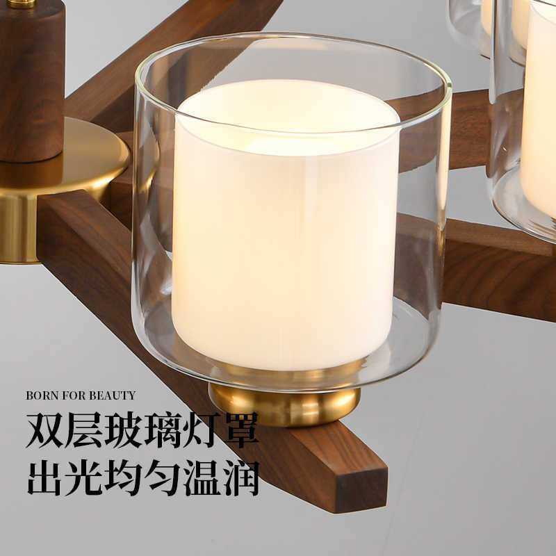 原宿北欧简约原木客厅高档大气创意个性卧室书房餐厅玻璃木艺吊灯