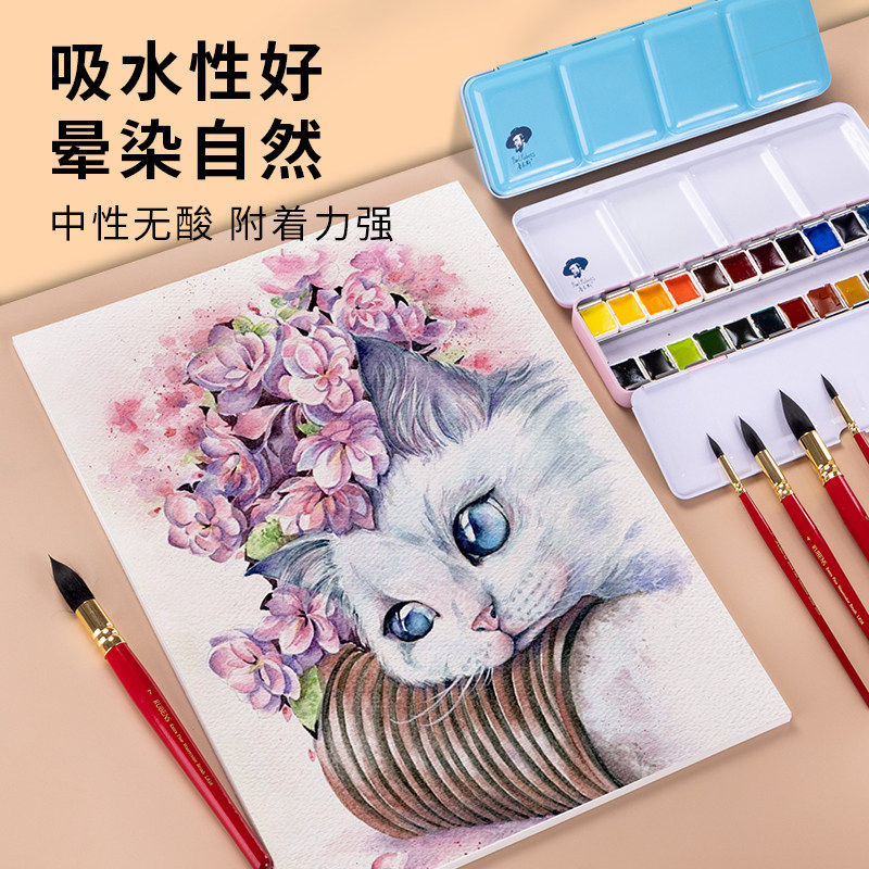 宝虹水彩纸300g8K4开水彩纸木浆A1a3专业水彩画纸美术生专用4k细粗纹水彩纸油画棒彩绘纸初学者木浆厚水彩纸
