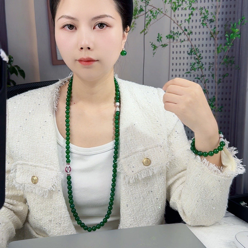 AILEQ天然玉髓时尚佛珠珠串宝满绿两圈叠戴新中式妈妈毛衣项链K10