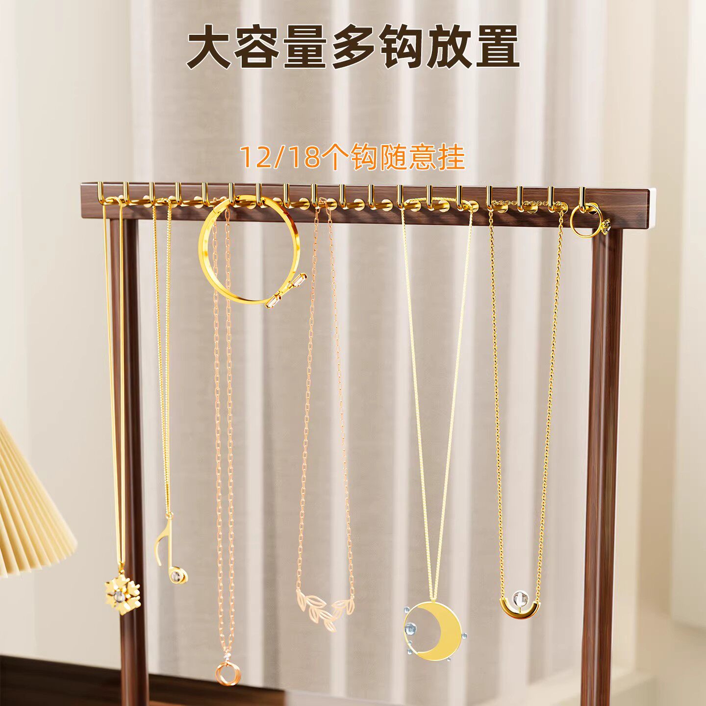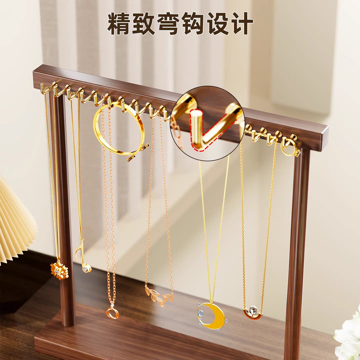 项链架手串收纳展示架钥匙扣耳环吊坠整理架桌面实木佛珠放置架子