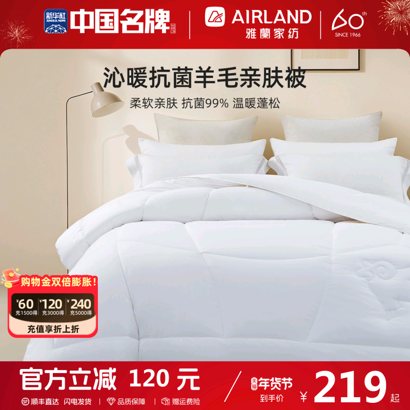 雅兰澳洲进口羊毛被100%纯羊毛被子羊绒被四季保暖抗菌被冬被正品