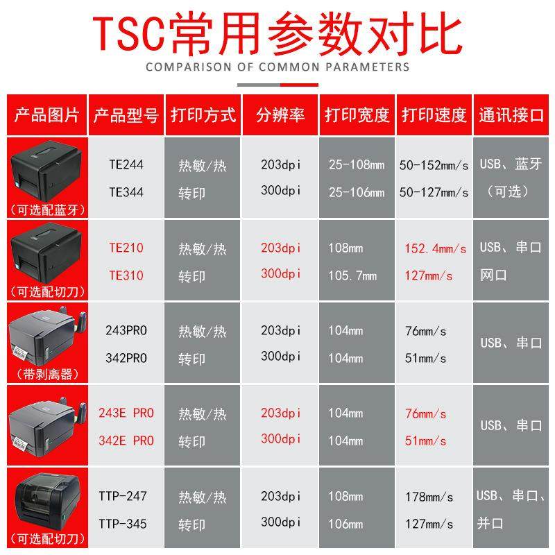 TSC条码打印机TE244/TE344/243/342/247/345/210/310不干胶标签机