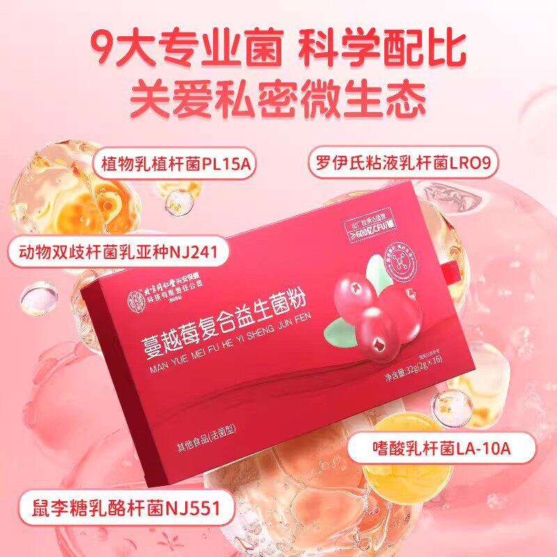 北京同仁堂蔓越莓女性益生菌私密护理妇科女私处乳酸杆菌调理健康