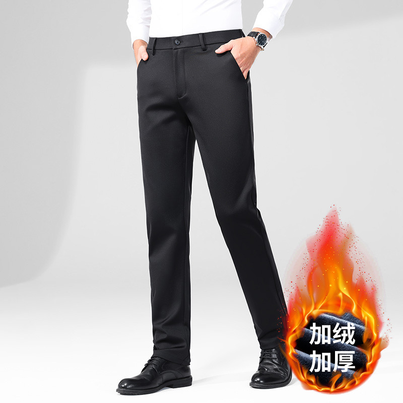 罗蒙加绒加厚男士休闲裤商务休闲秋冬季新款弹力直筒西裤秋冬款