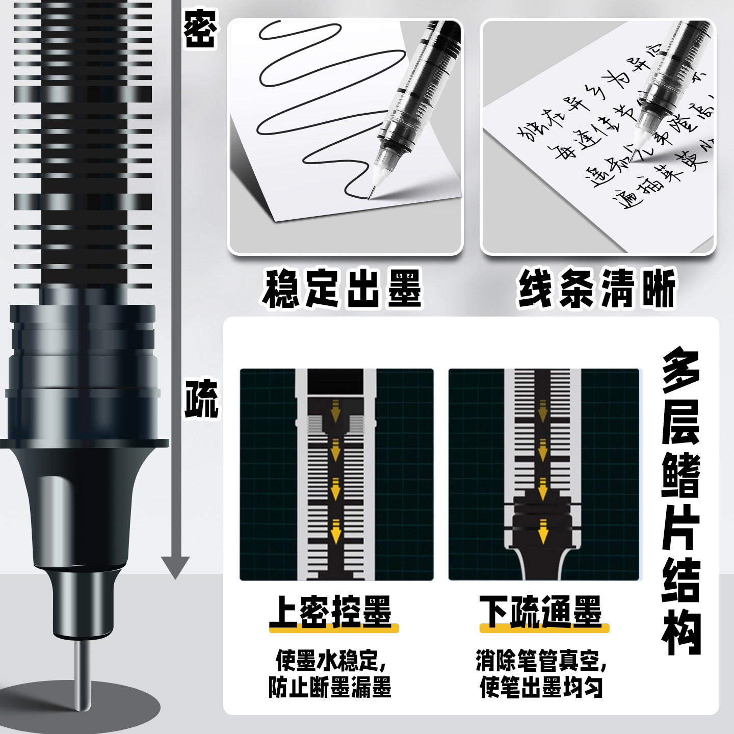 国风桶装刷题笔速干顺滑黑笔高颜值按动中性笔ST0.5黑色笔芯水性圆珠笔小学生专用考试笔非按斤卖碳素签字笔