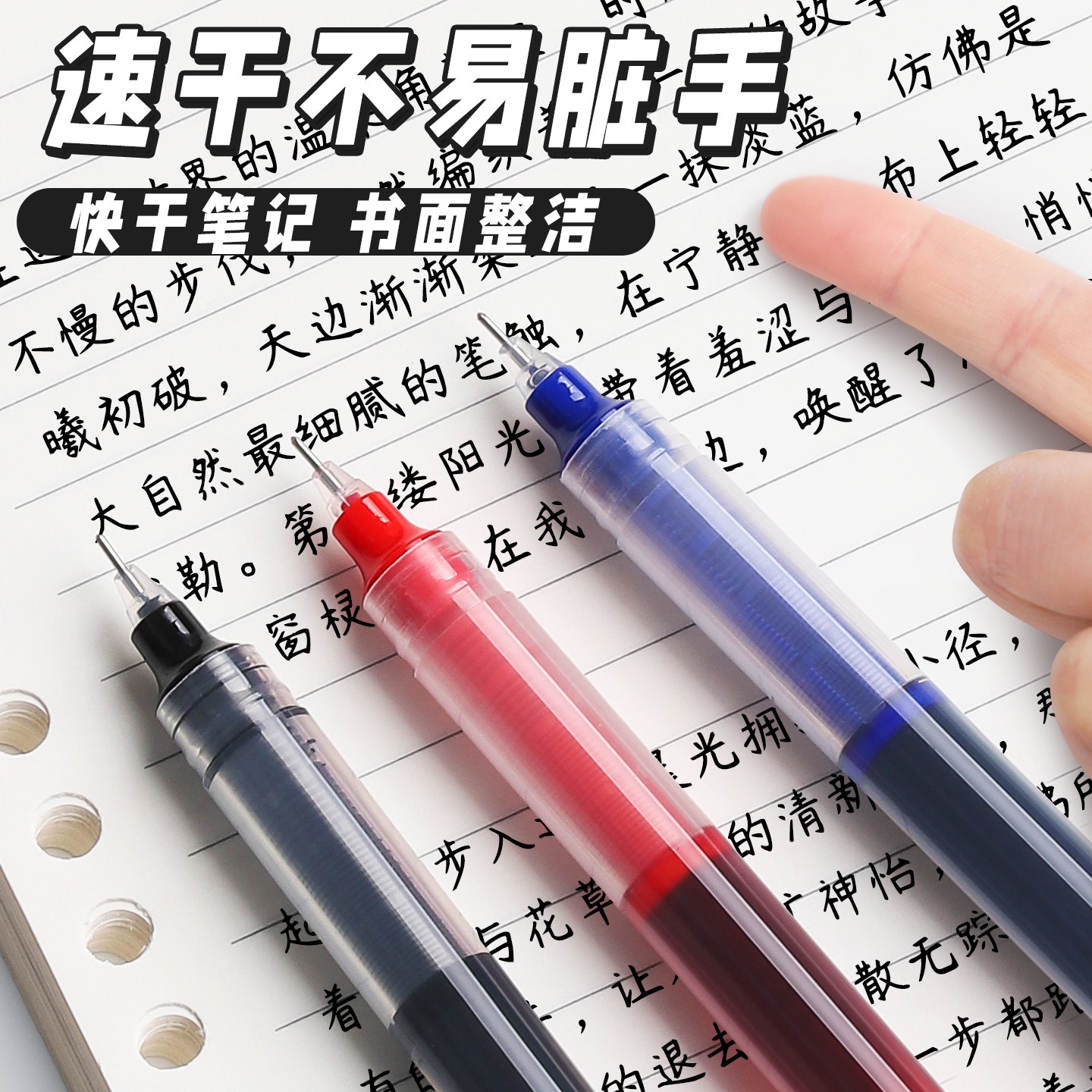 真彩中性笔直液式走珠笔黑笔刷题笔签字笔考试老师学生专用速干蓝红笔黑色写字笔圆珠笔水笔针管型碳素直液笔