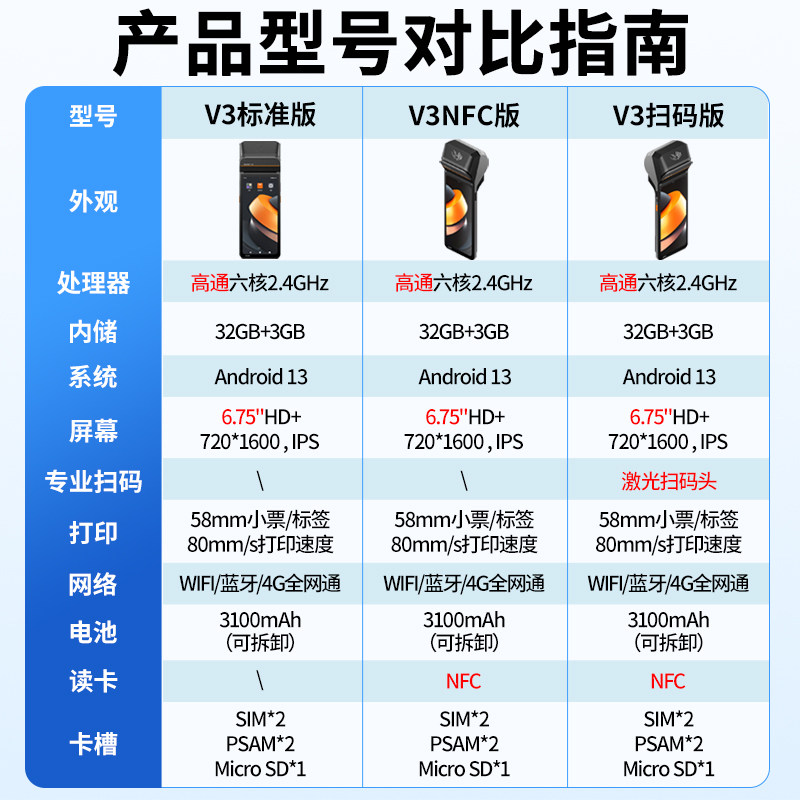 SUNMI商米v3v2s手持收银机美食餐饮商用超市零售服装店美容收银系统移动点餐支付排队叫号零售票据标签双打印