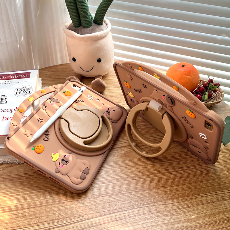 儿童卡通iPad Air6保护套mini5平板壳pro11硅胶套360旋转支架iPad10防摔2迷你3笔槽10.2适用苹果air4全包7代9
