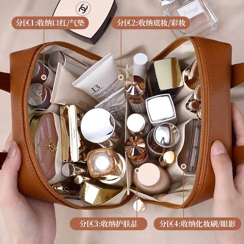 贝壳化妆包ins大容量PU通勤化妆品收纳袋批发手提包