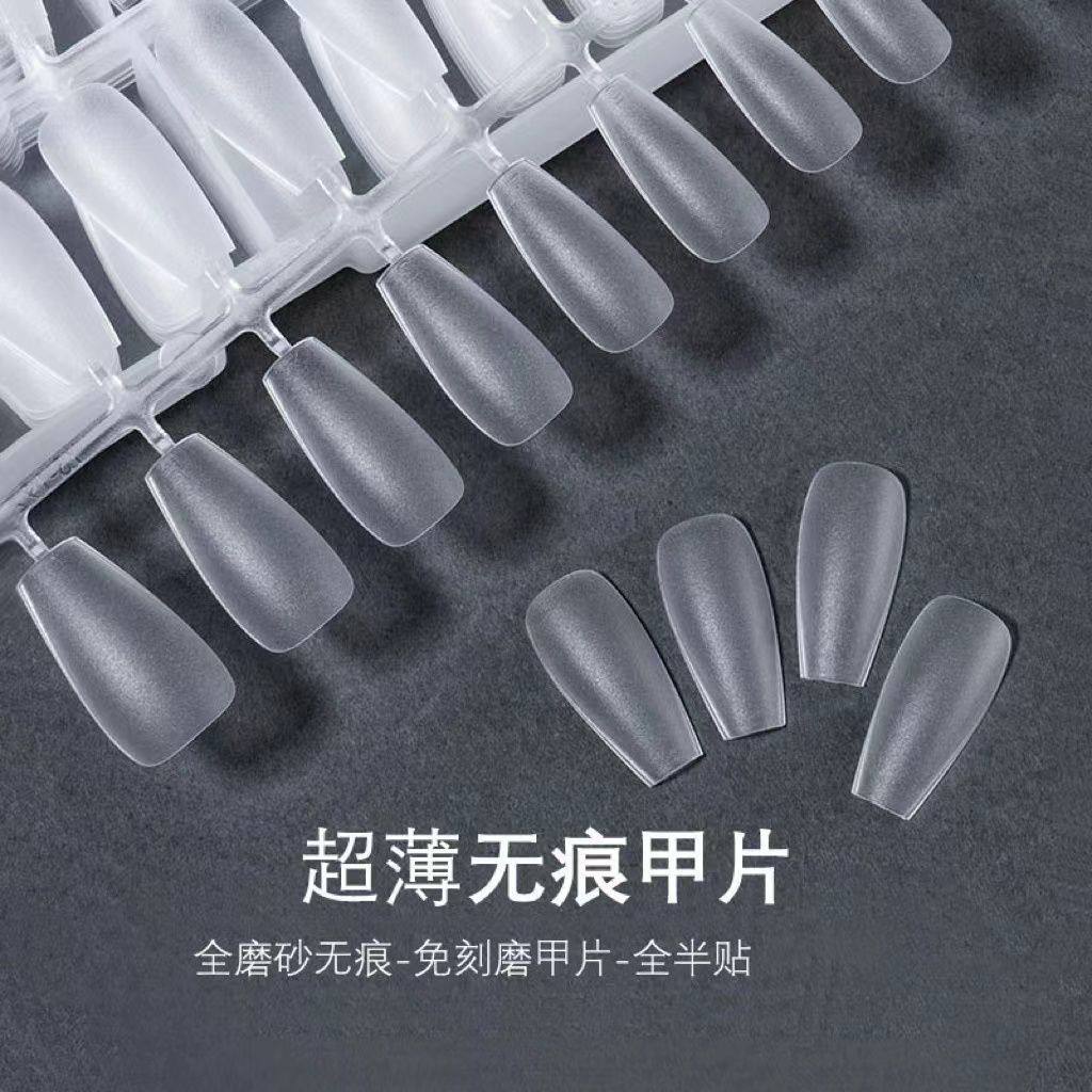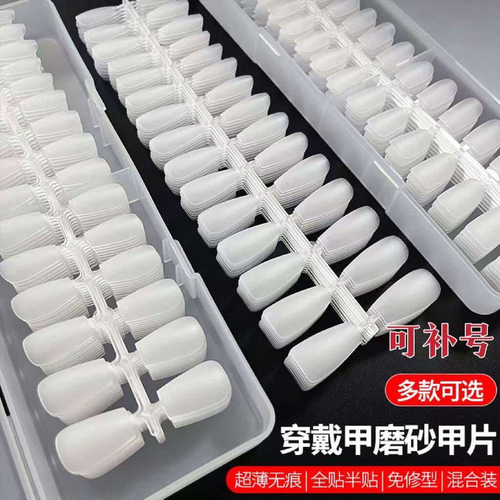 美甲贴片免刻磨砂甲片超薄透明半贴美甲店专用延长新款杏仁穿戴