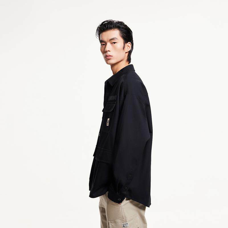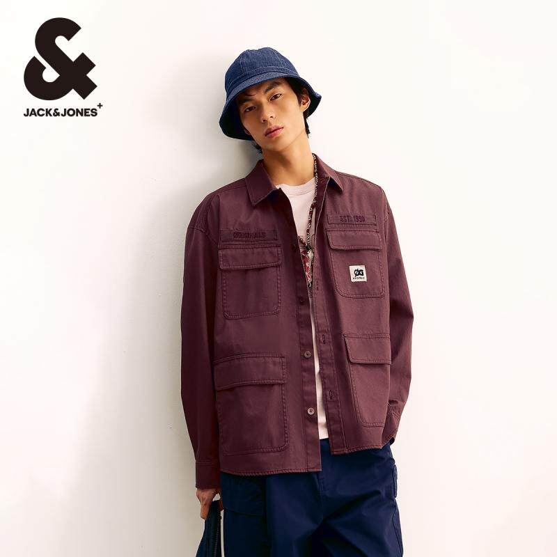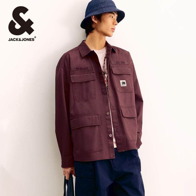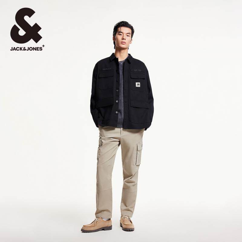 杰克琼斯春季新款潮时尚休闲字母刺绣多口袋廓形翻领衬衫男款男装