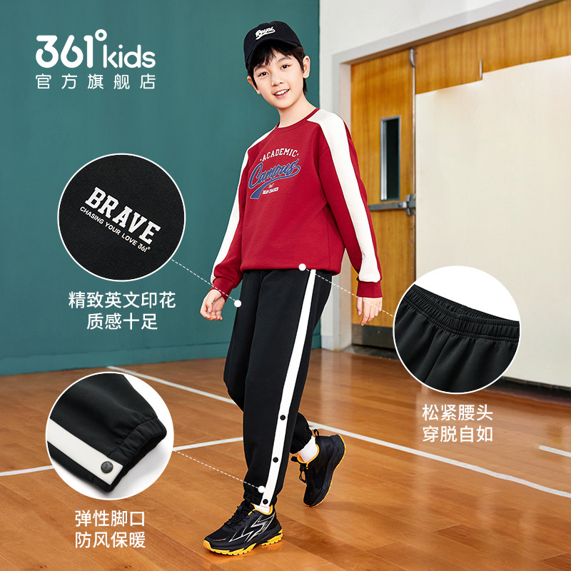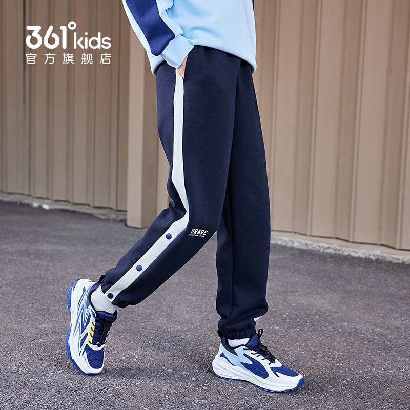 361°童装男童运动针织长裤2025秋季新款中大童排扣保暖休闲裤子
