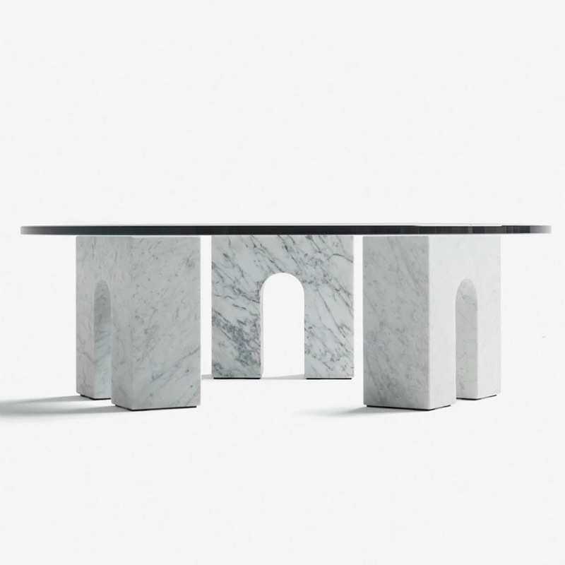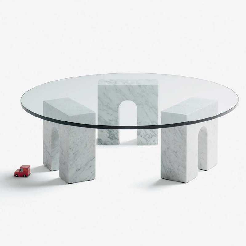 北欧天然大理石茶几设计师样板间现代简约客厅玻璃圆形茶几小户型