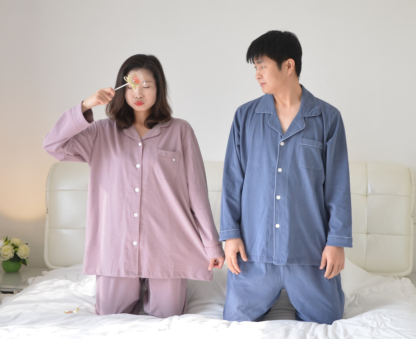 安比斯情侣睡衣舒适纯棉秋季女长袖男女同款休闲家居服套装可出门