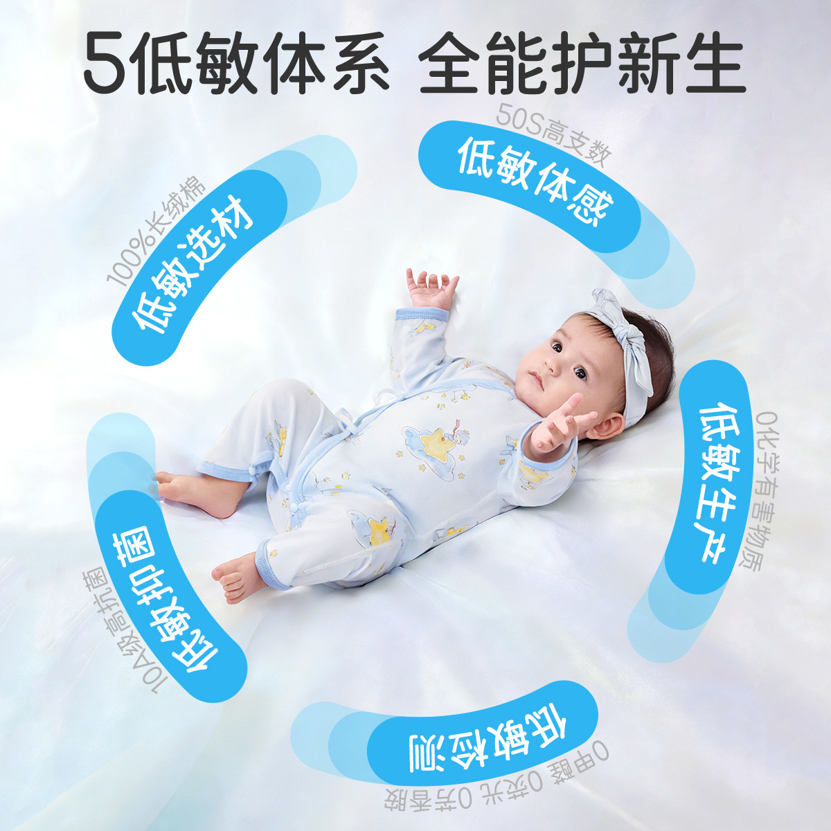 婧麒新生婴儿衣服春秋季a类纯棉连体衣小月龄宝宝偏开系带蝴蝶衣