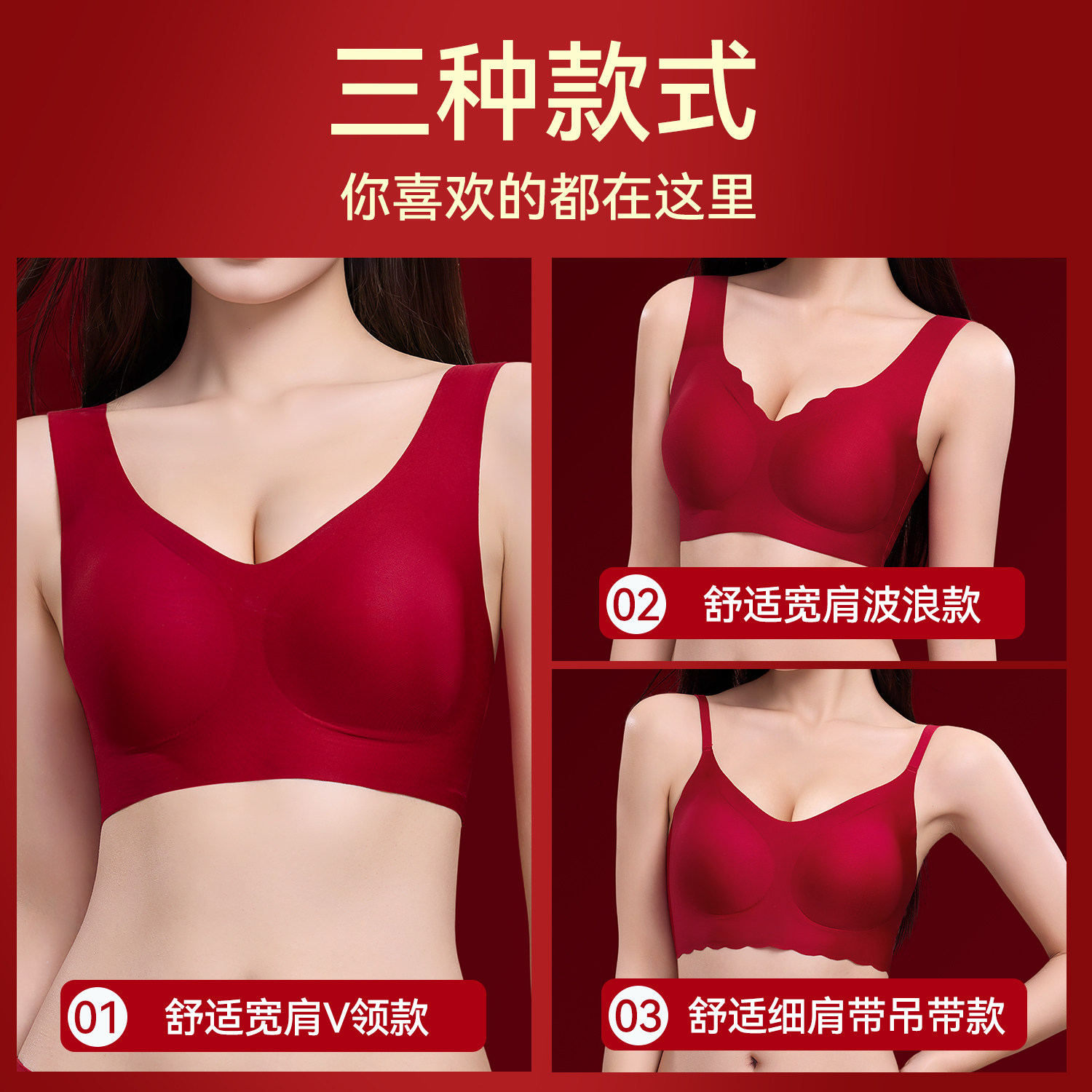 猫人本命年小胸聚拢红色内衣新款无痕显大结婚新娘文胸罩内裤套装