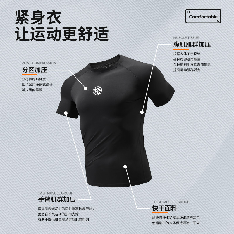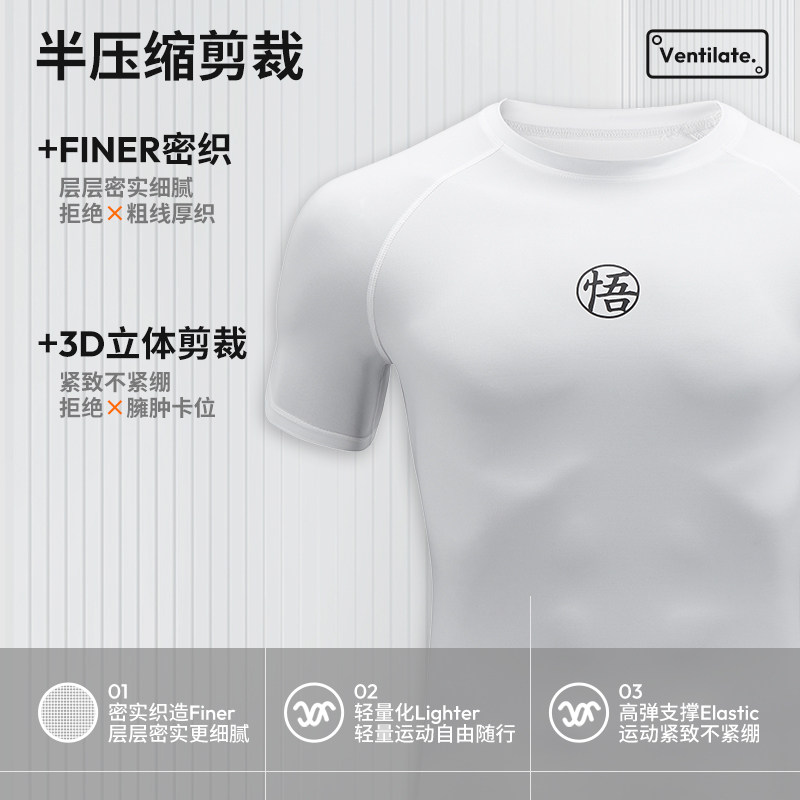 维动龙珠Z联名紧身衣男夏短袖篮球训练服健身服高弹打底运动上衣
