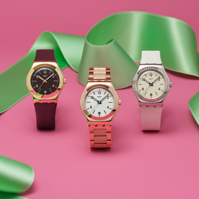 Swatch斯沃琪瑞士新款手表金属日历女士轻奢石英手表考试圣诞礼物