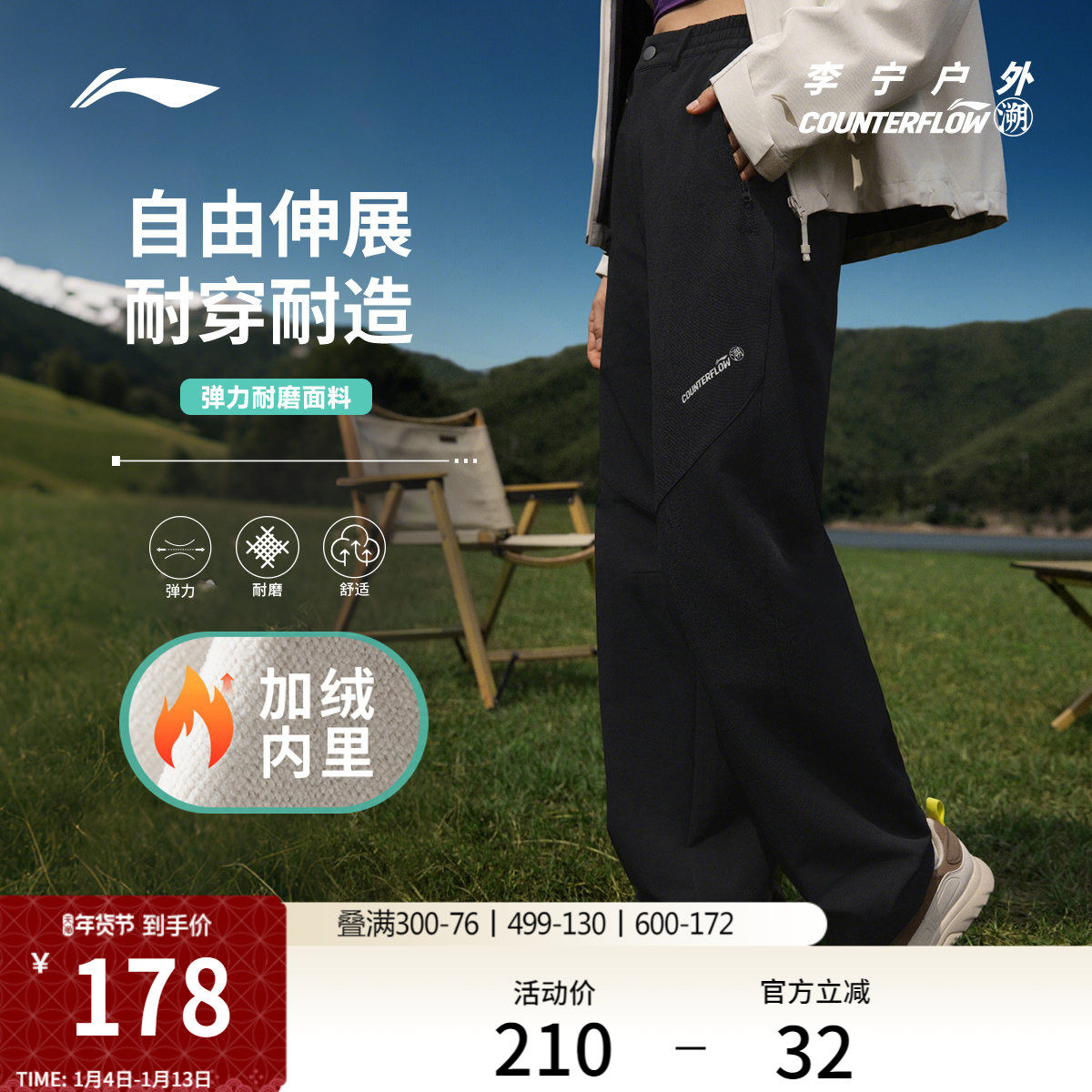 李宁户外CF溯丨运动裤女士加绒保暖反光裤子冬季直筒梭织运动裤