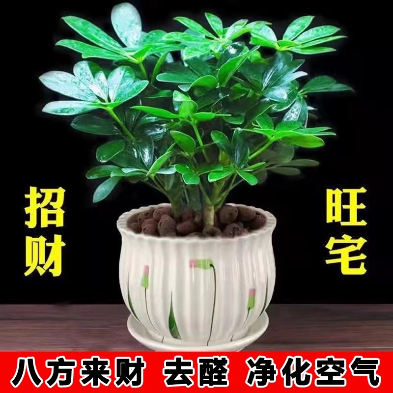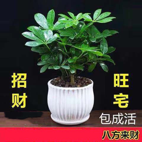 八方来财摇钱树鸭脚木盆栽四季常青花卉盆景发财树客厅招财旺宅