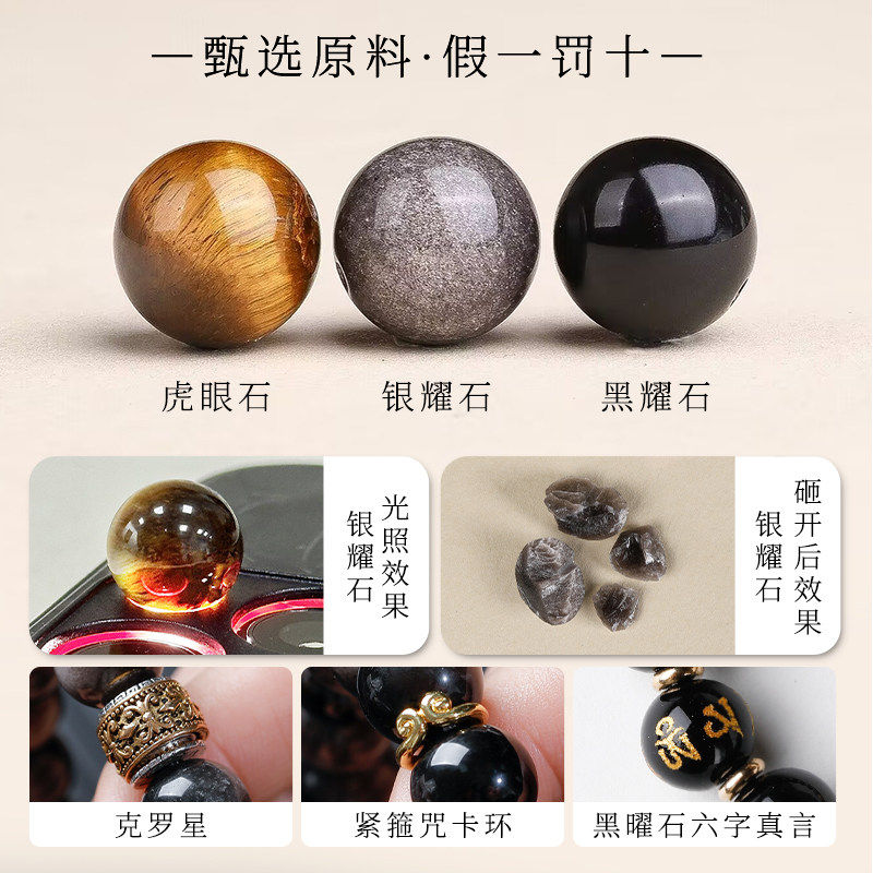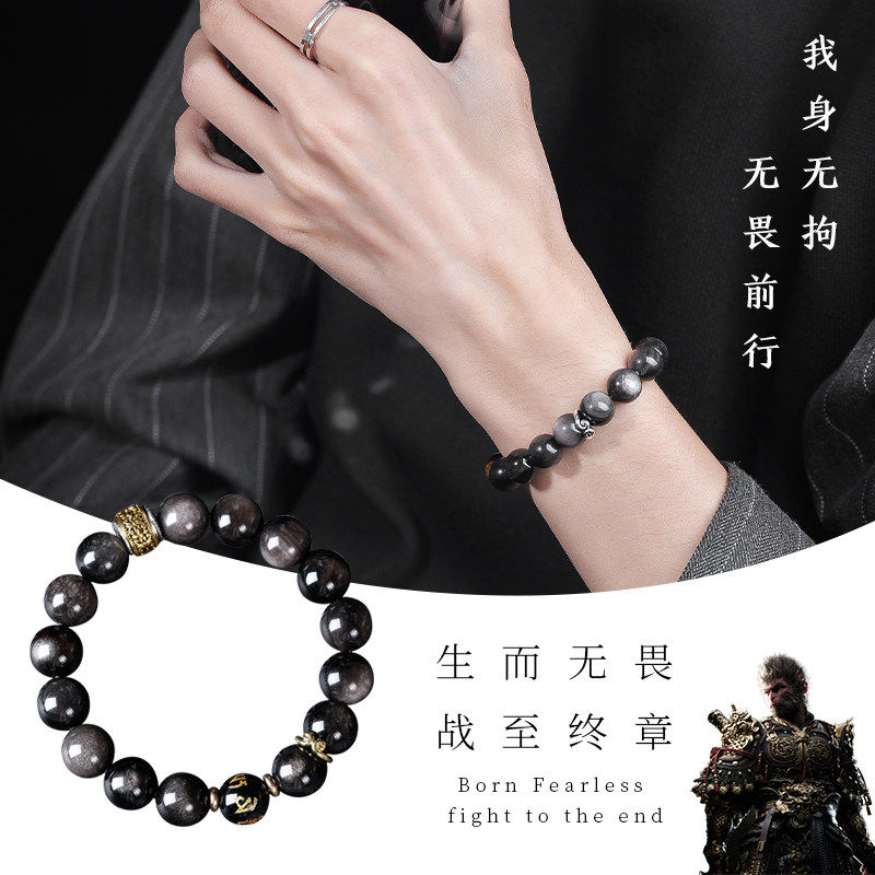 黑神话悟空同款黑曜石手串 银曜石天命人文玩佛珠开运饰品
