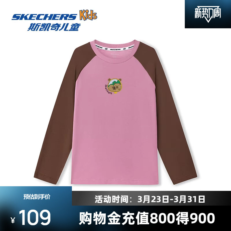 斯凯奇童装亲子T恤秋男女通用柔软舒适运动休闲时尚简约